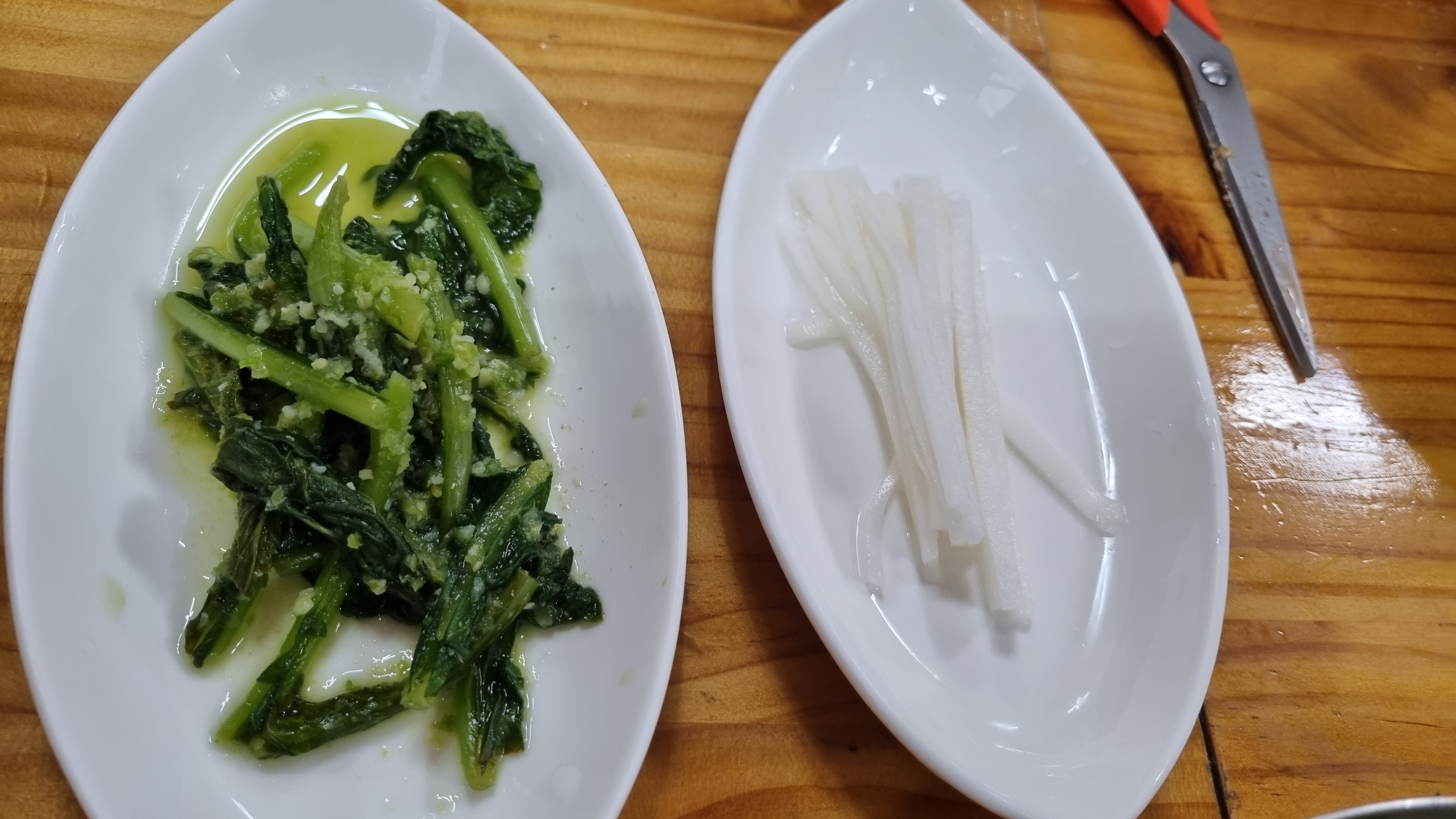 반찬은 딱 2가지가 나오는 시원한 열무김치와 무 김치입니다. 처음에는 기본으로 나오고 이후에는 셀프로 직접 드실 만큼 가져가면 됩니다.