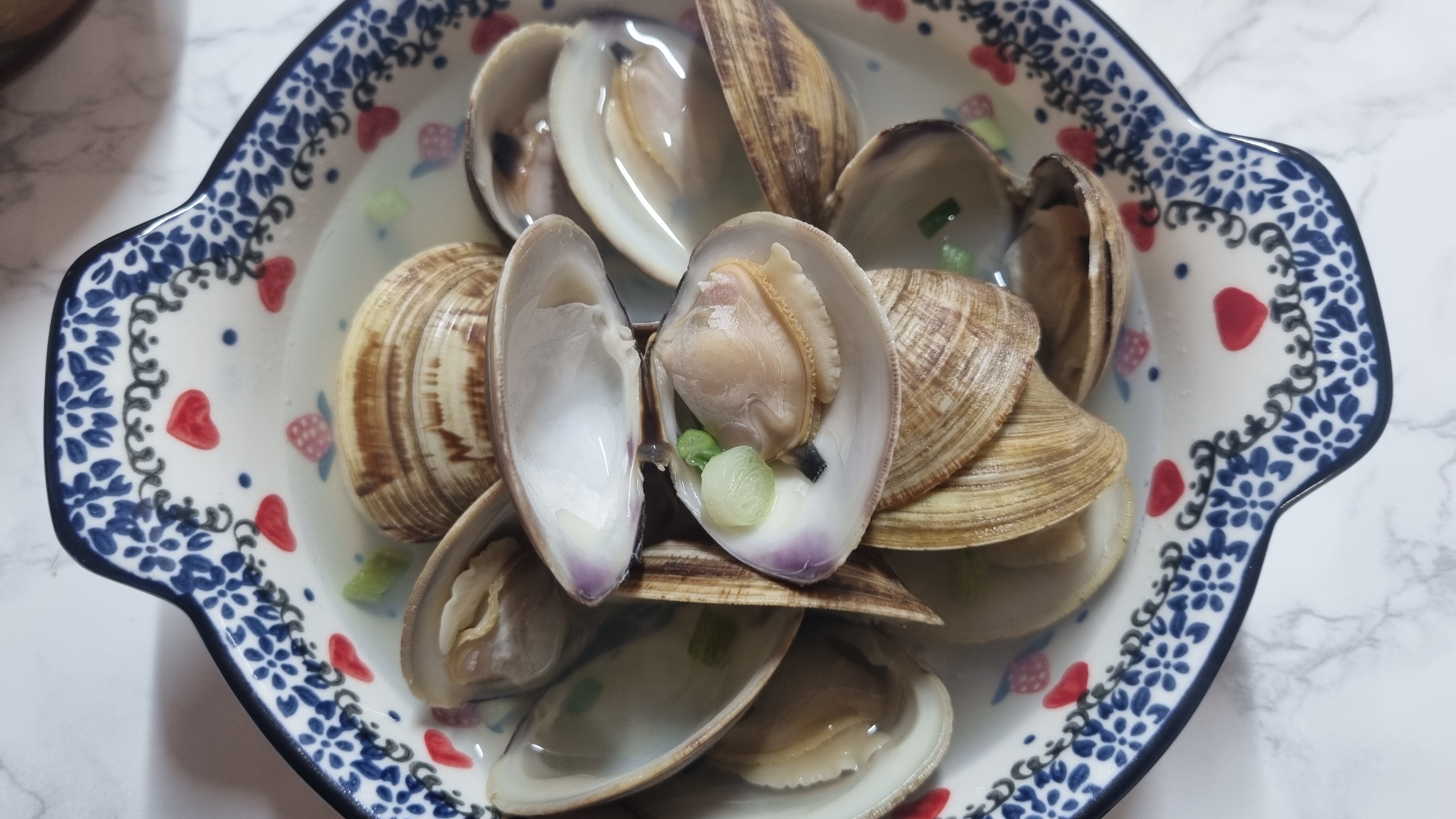 물은 조개 높이가 되지 않게 하면 되고 소금은 이때 넣으면 됩니다. 이후 최종적으로 들어가는 재료는 대파가 전부이므로 조리 과정이나 재료는 정말 간단합니다.