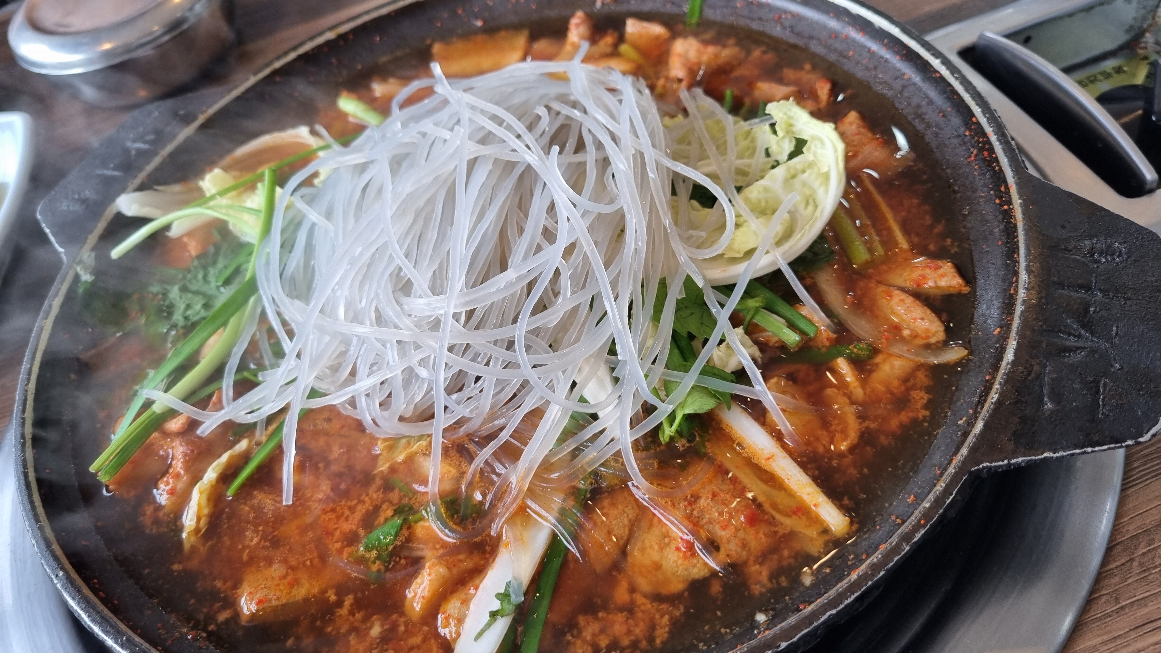 테이블에서 끓기 시작하면 당면과 야채를 골고루 뒤집어 주면서 섞어주면 맛있게 됩니다.