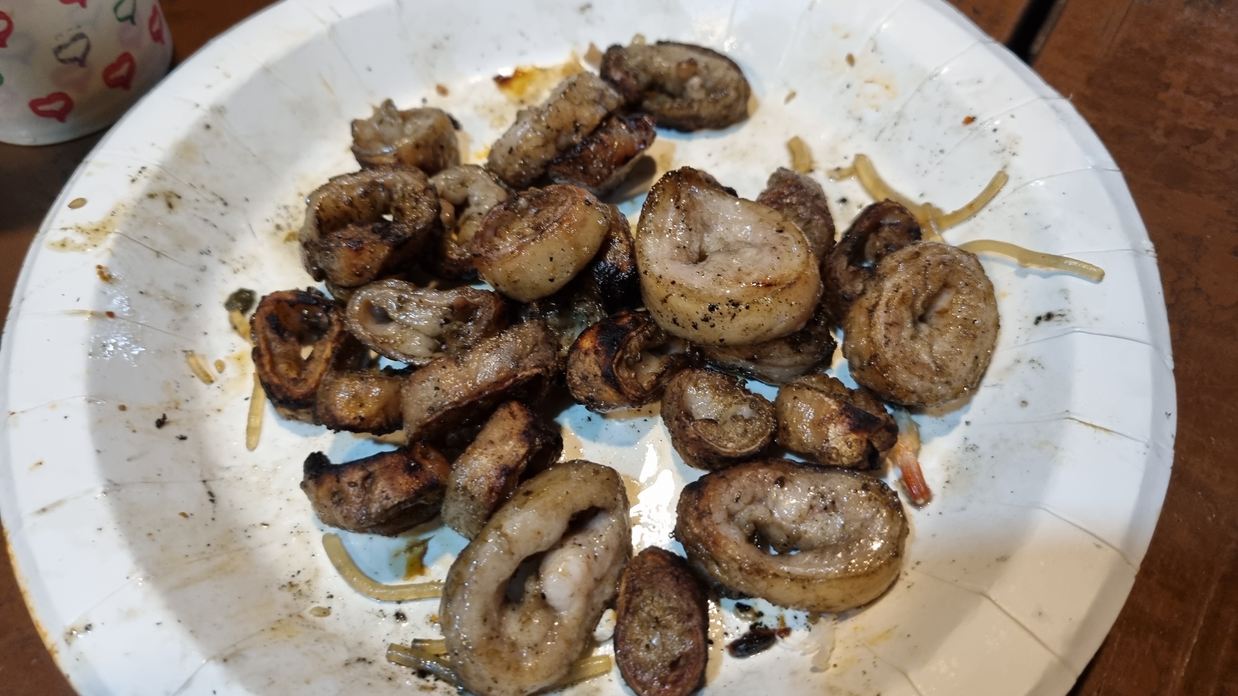 야외 펜션에 놀러오면서 모두 해동되었고 돼지 목살을 구워 먹은 후 바로 막창을 구웠습니다. 일단 막창 특유의 냄새가 나지 않아 좋았으며 돼지고기 목살보다 더 쉽게 구워졌습니다.