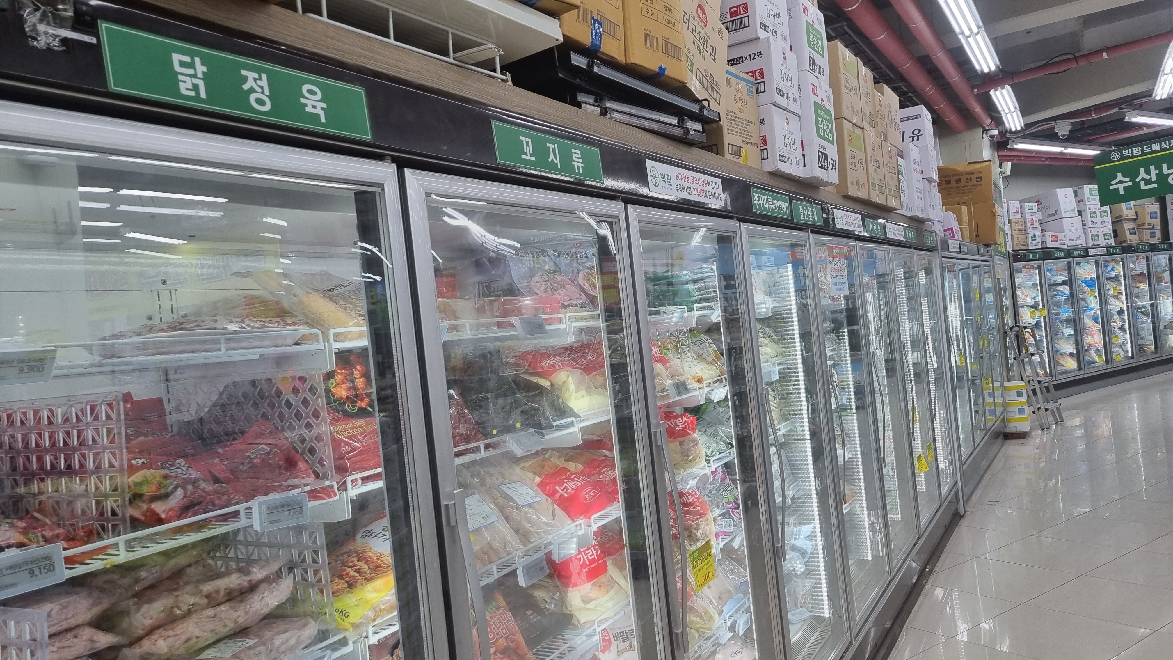 냉동식품 코너인데 상상이상으로 다양한 식품이 있다는 것을 아실 것입니다. 구경을 한참 했는데 오리지널 후라이드치킨부터 시작해서 닭다리 닭날개 치킨이 있고 새우튀김, 잡채튀김, 산적, 피자, 감자탕, 삼계탕, 양념곱창, 국밥, 매운탕등 너무 많습니다.