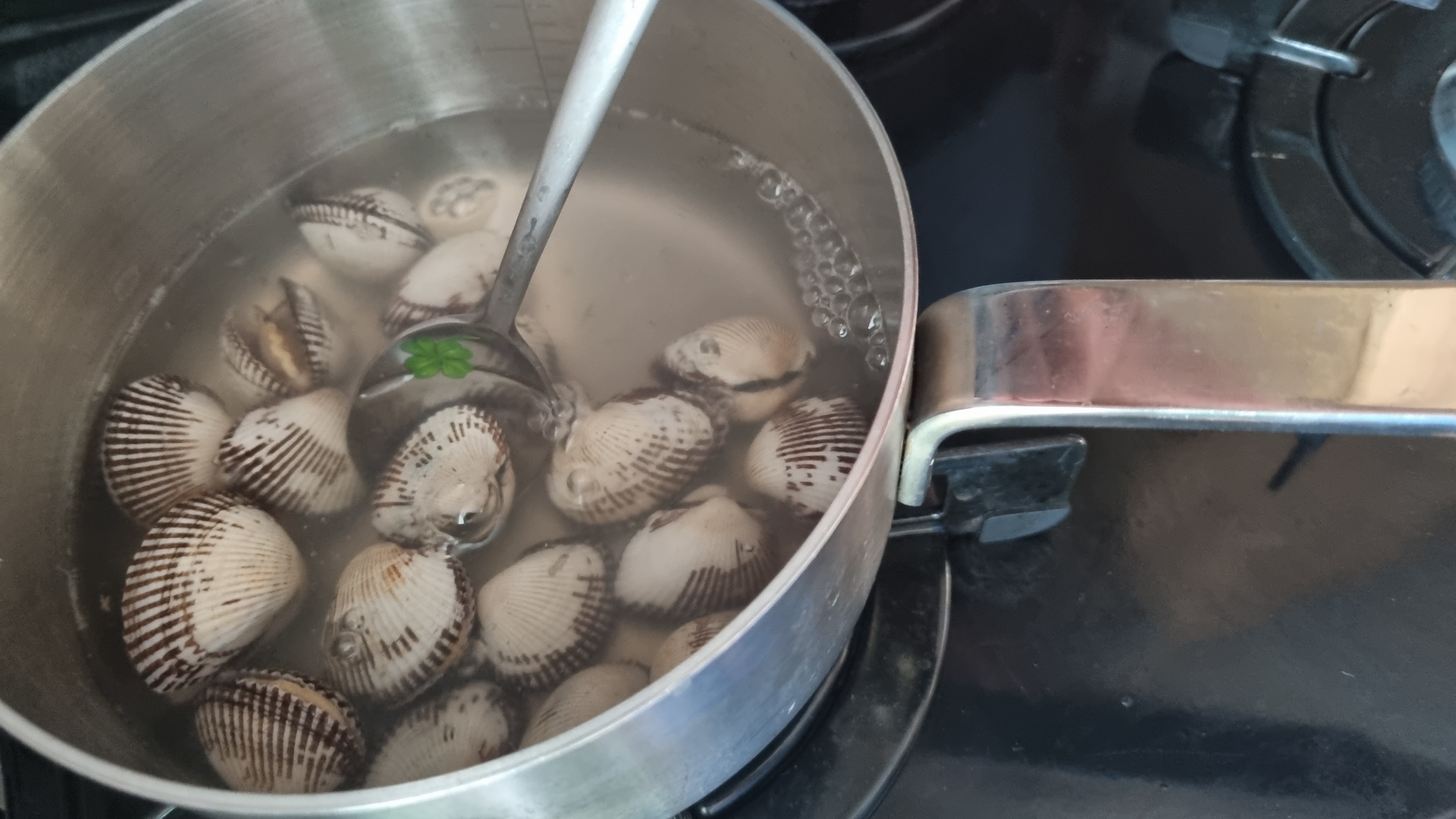 일단 꼬막을 끓은 물에 넣었으면 대략 1분 정도는 그대로 뚜껑을 덮어두면 되며 이후 1분 정도의 시간이 지나면 수저나 다른 도구를 이용하여 계속저어 주어야 합니다.