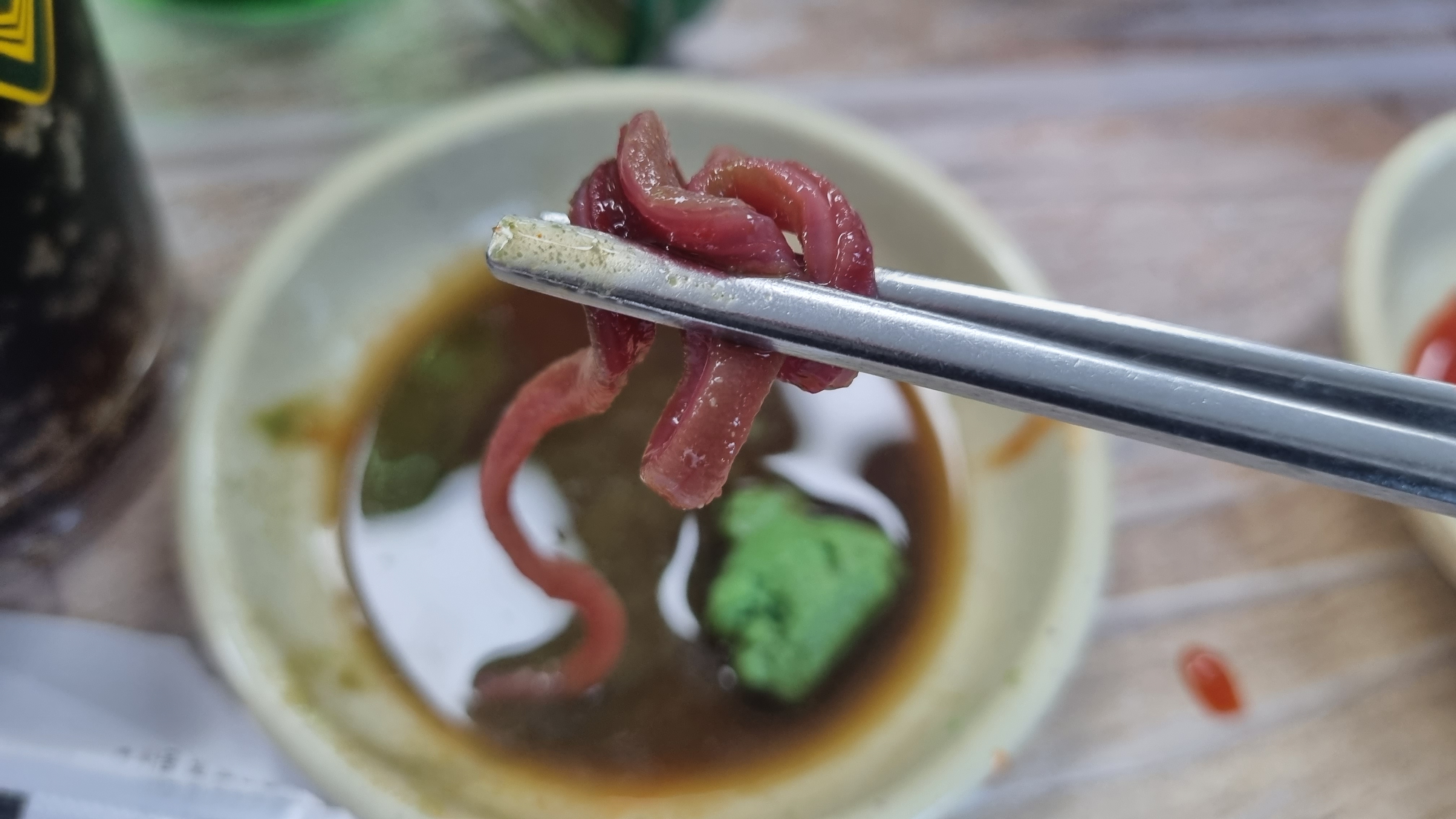 이것은 개불을 주문했는데 멍게와 더불어 2만 원짜리입니다. 개불이 먹고 싶은 일행들이 있어 주문을 했는데 역시 생선회와 와 다른 특유의 맛이 있어 다들 좋아합니다.
