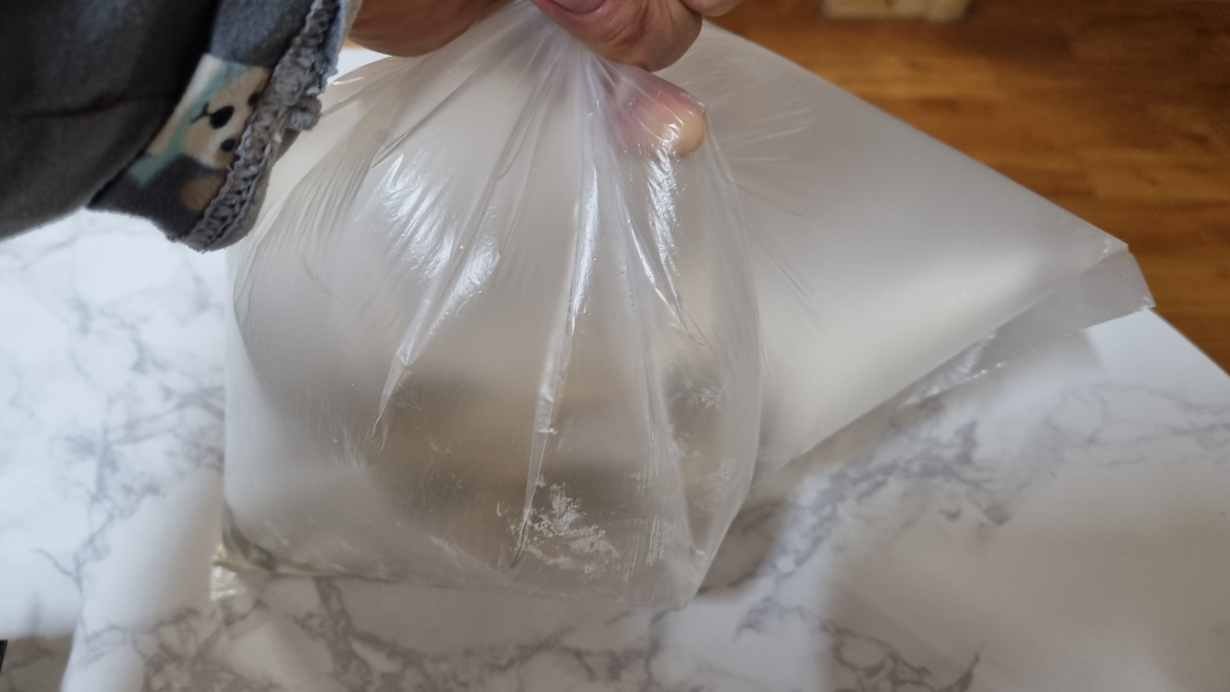 요즘에 많이 사용한 방법인데 미리 부침가루의 양을 결정하고 이것을 집에 있는 비늘봉지에 먼저 넣습니다.