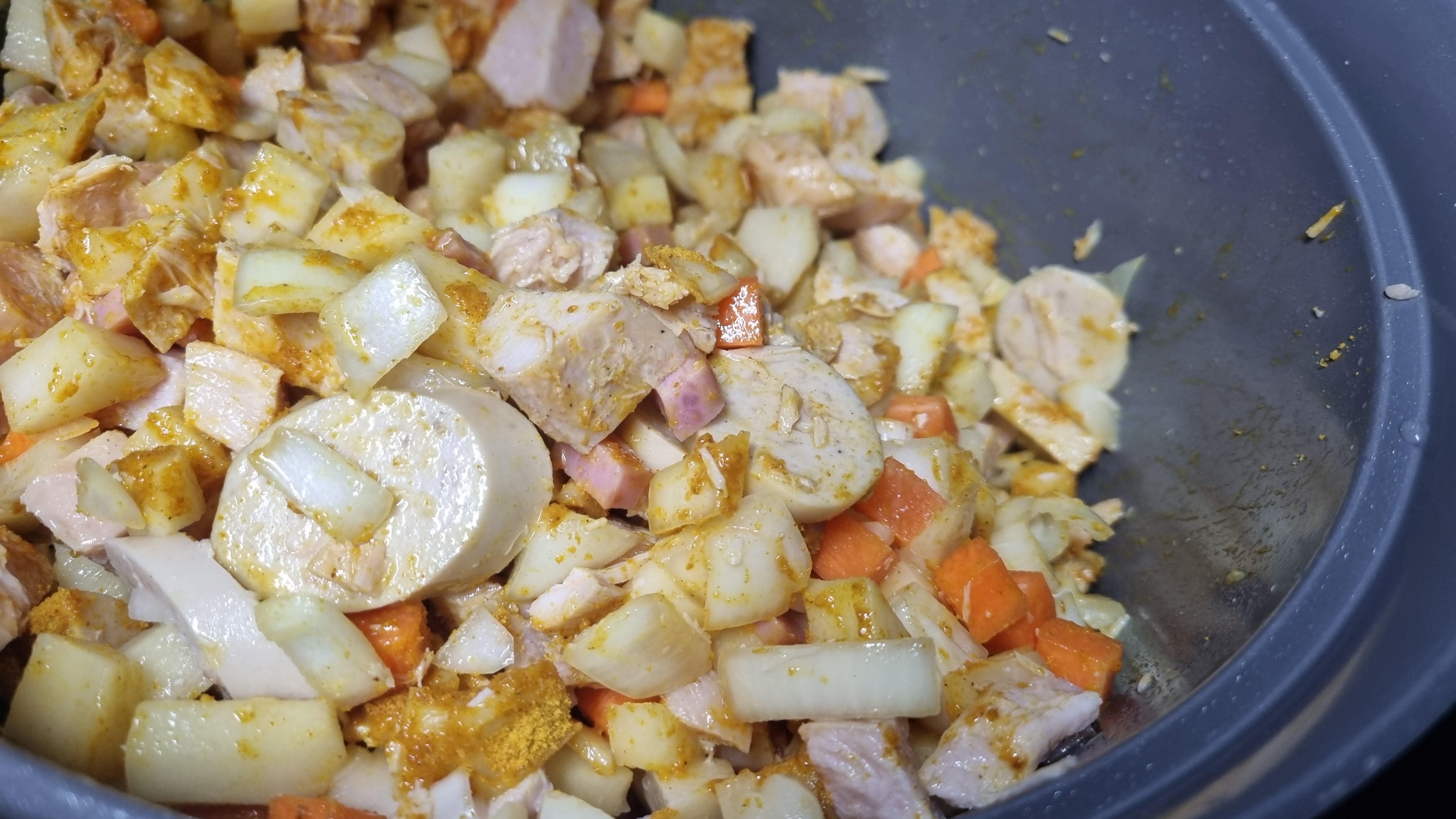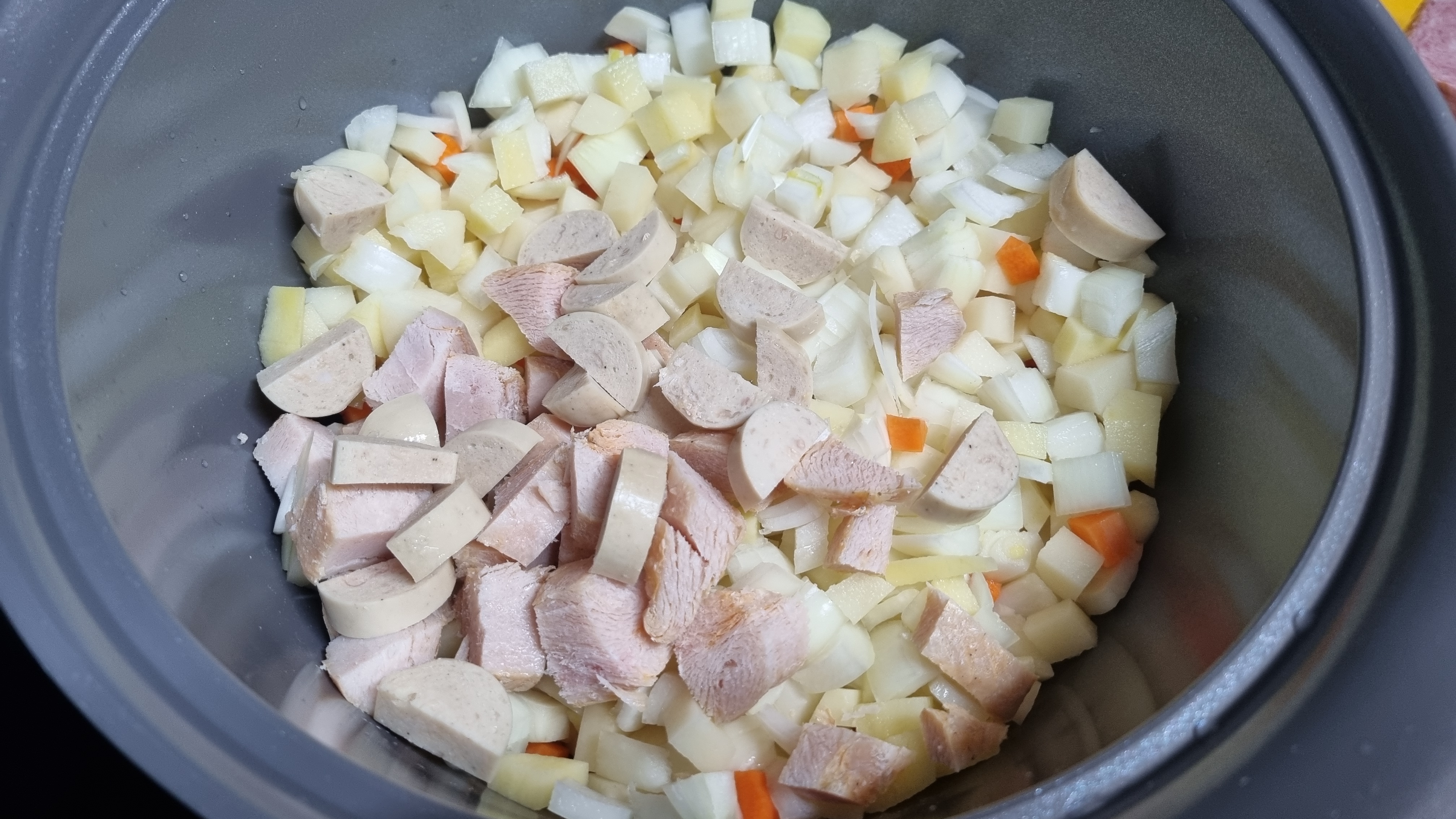 이 정도 준비하였는데 필자는 햄과 닭고기가 집에 조금씩 있어 넣었으며 스팸이나 떡은 있으면 넣지만 필수품은 아니므로 준비가 되어 있으면 넣으셔도 됩니다.