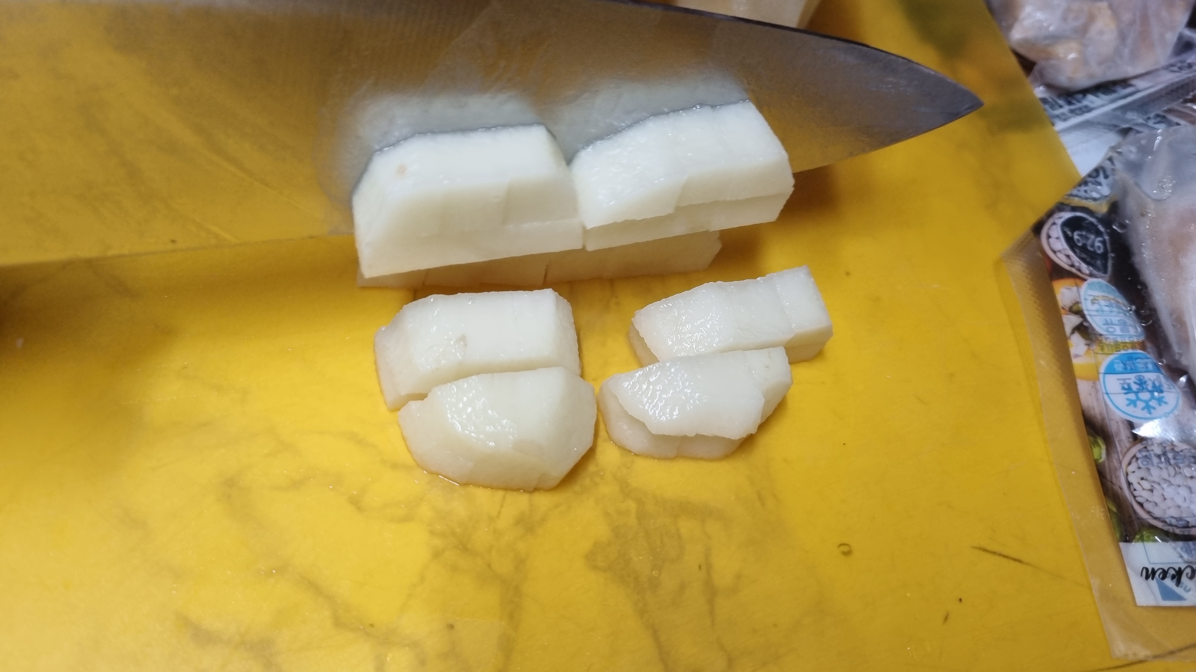 일반적으로 음식에 들어 갈때 조금 길게 썰어 넣은 것이 특징인데 카레에 넣을 때는 위의 사진처럼 길지 않고 작게 썰어 넣은 것이 보기에도 좋고 먹기에도 좋으며 특히 어린이들이 함께 먹을 때에 크게 썰면 불편합니다.