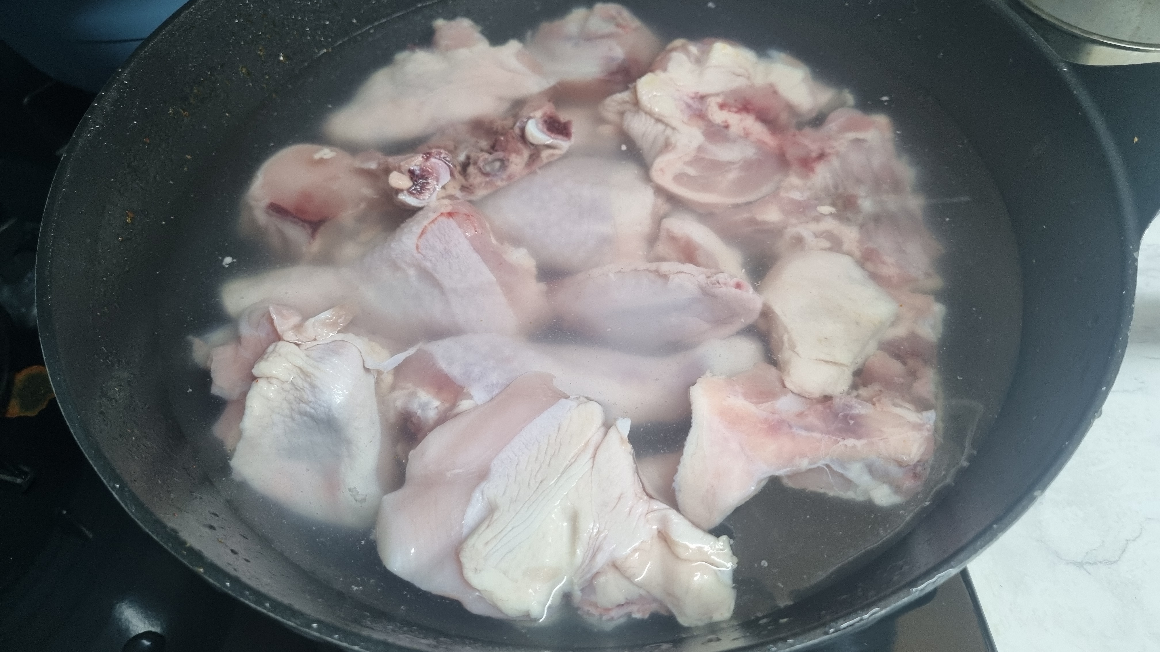 먼저 닭을 가볍게 물을 한번 씻고 이어서 물에 삶아서 익혀줍니다. 많은 분들이 바로 양념을 하여 볶기 시작하는 경우가 많은데 이러면 기름기도 많아지고 맛도 떨어지게 됩니다.