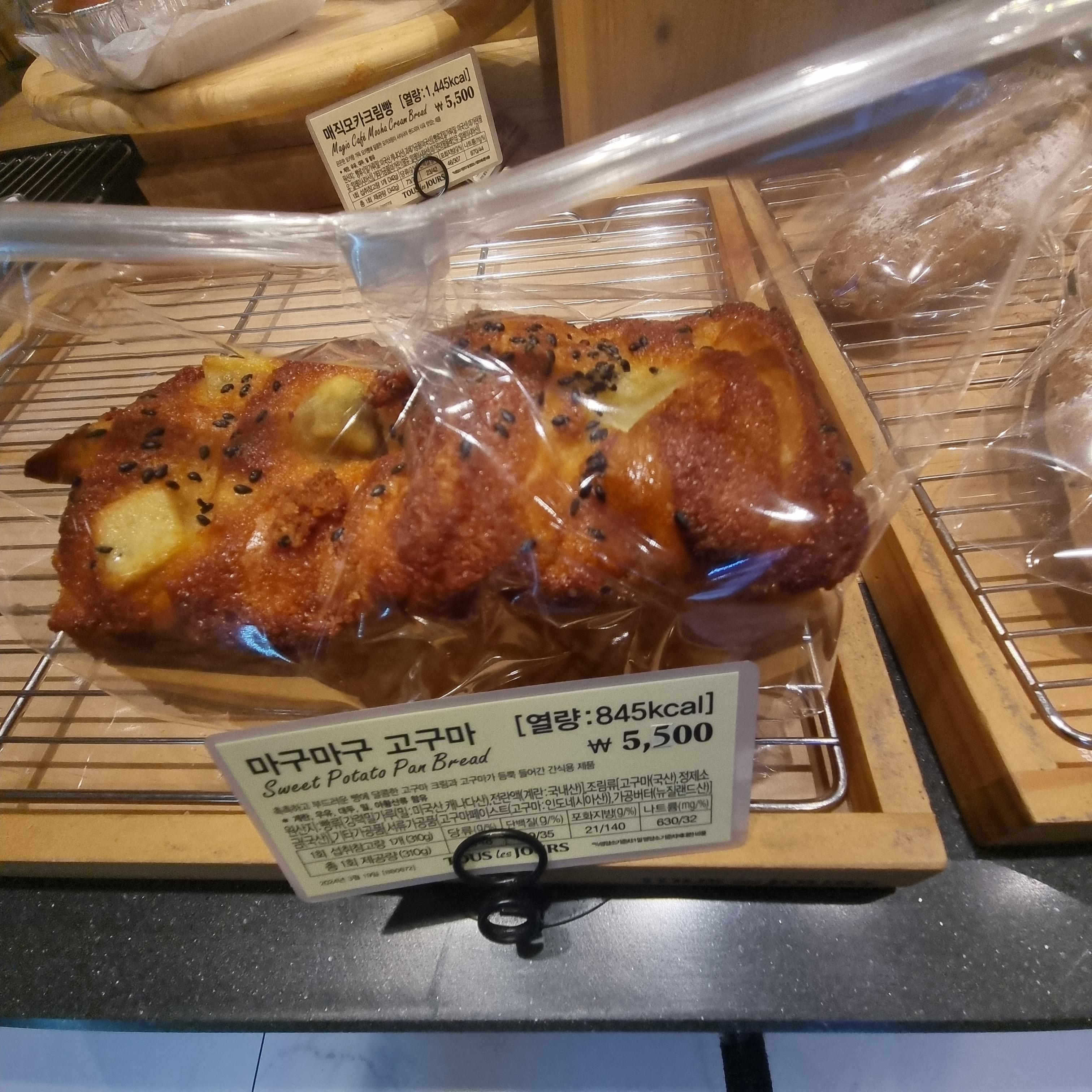 위의 빵들은 빵집마다 체인점마다 특색있게 개발된 빵으로 역시 가격도 상당히 더 비싸게 판매되는데 그중에 인기가 있는 마구마구 고구마빵인데 가격이 무려 5,500원입니다.