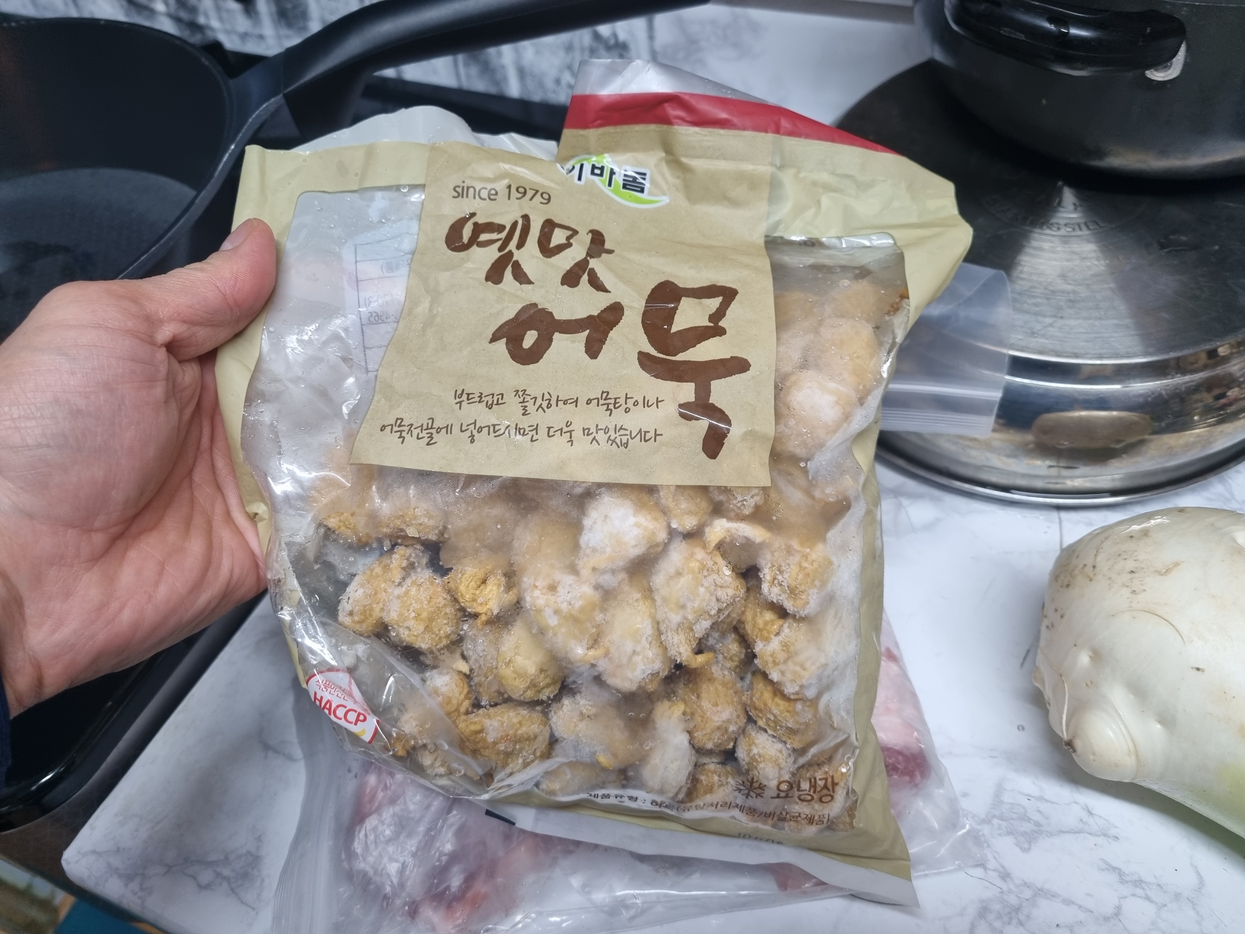 주재료인 햄과 어묵은 냉동실에 보관해 놓은것인데 이렇게 하면 유통기한과 상관없이 조금 더 오랫동안 보관이 가능합니다.