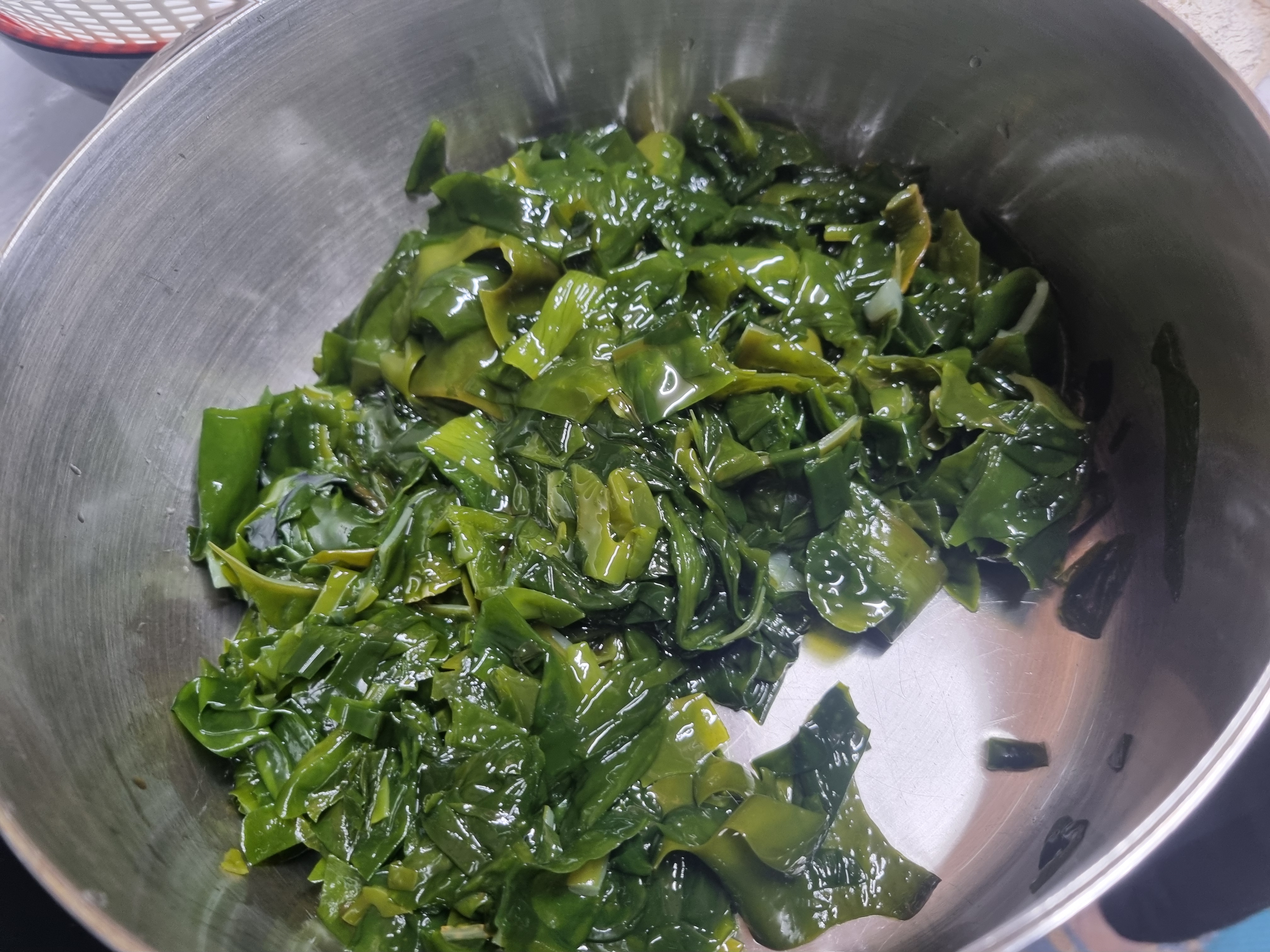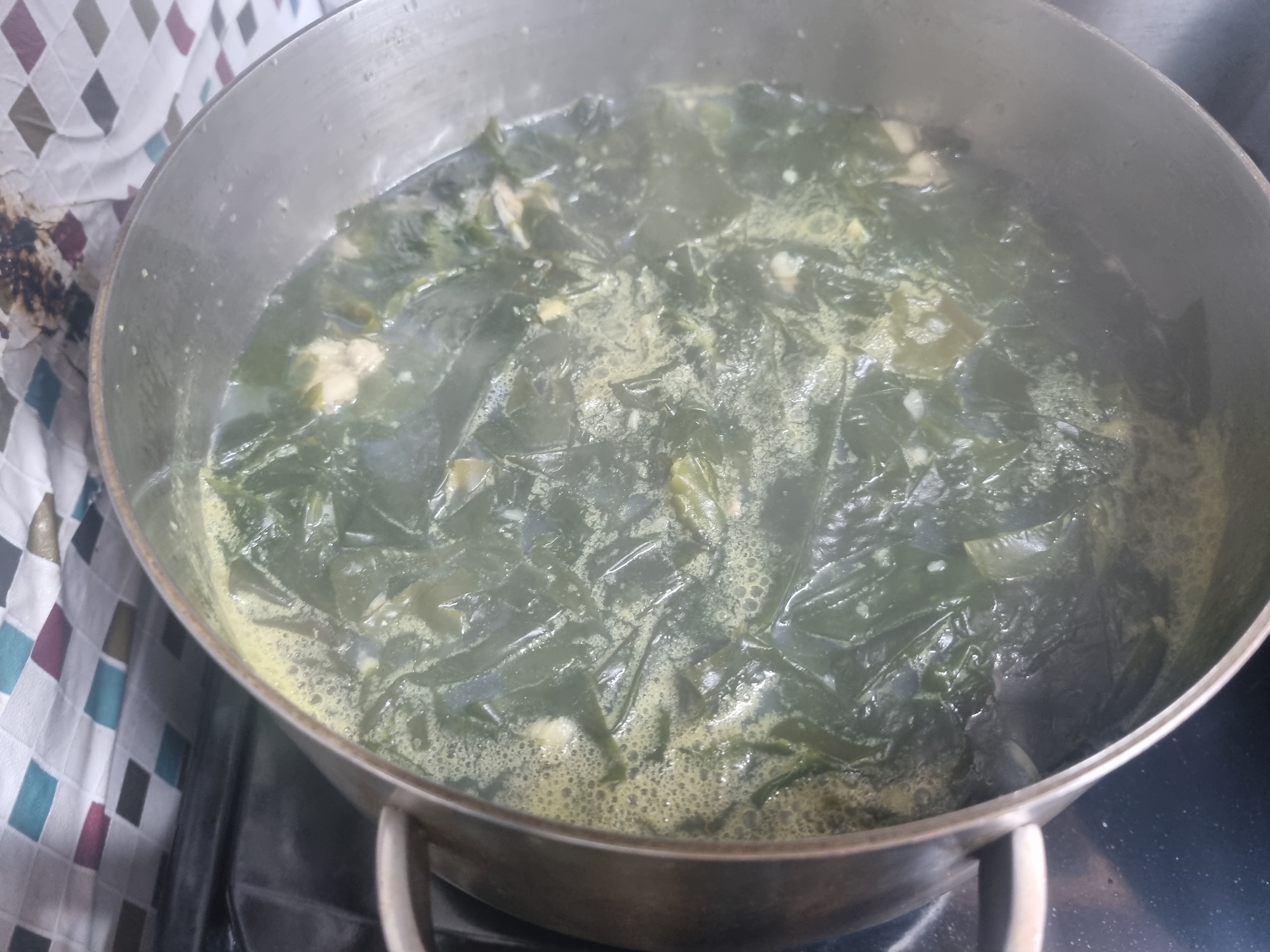 이렇게 미역국을 끓여 놓으면 4인가족이 2끼 식사를 할 수 있습니다.