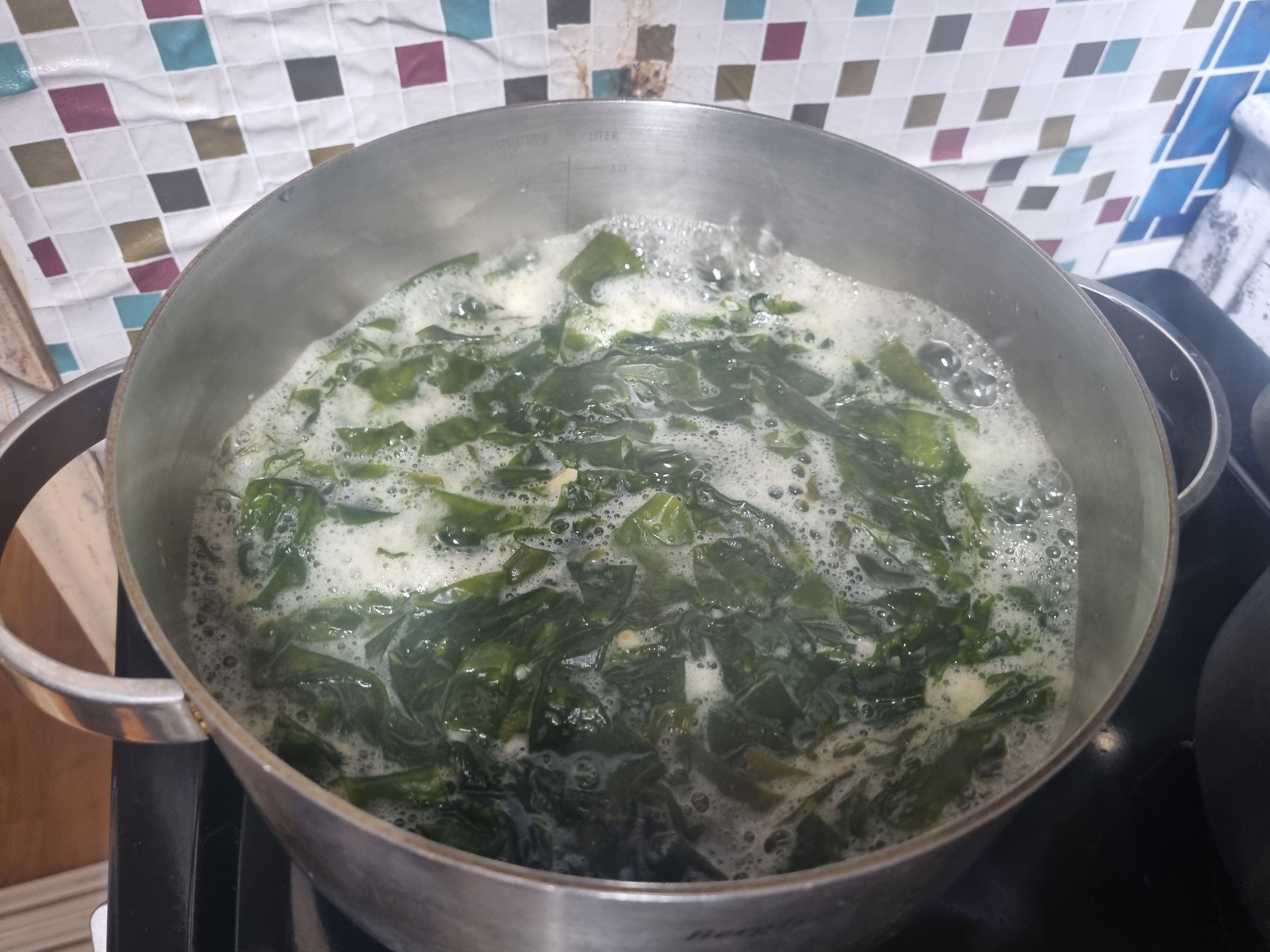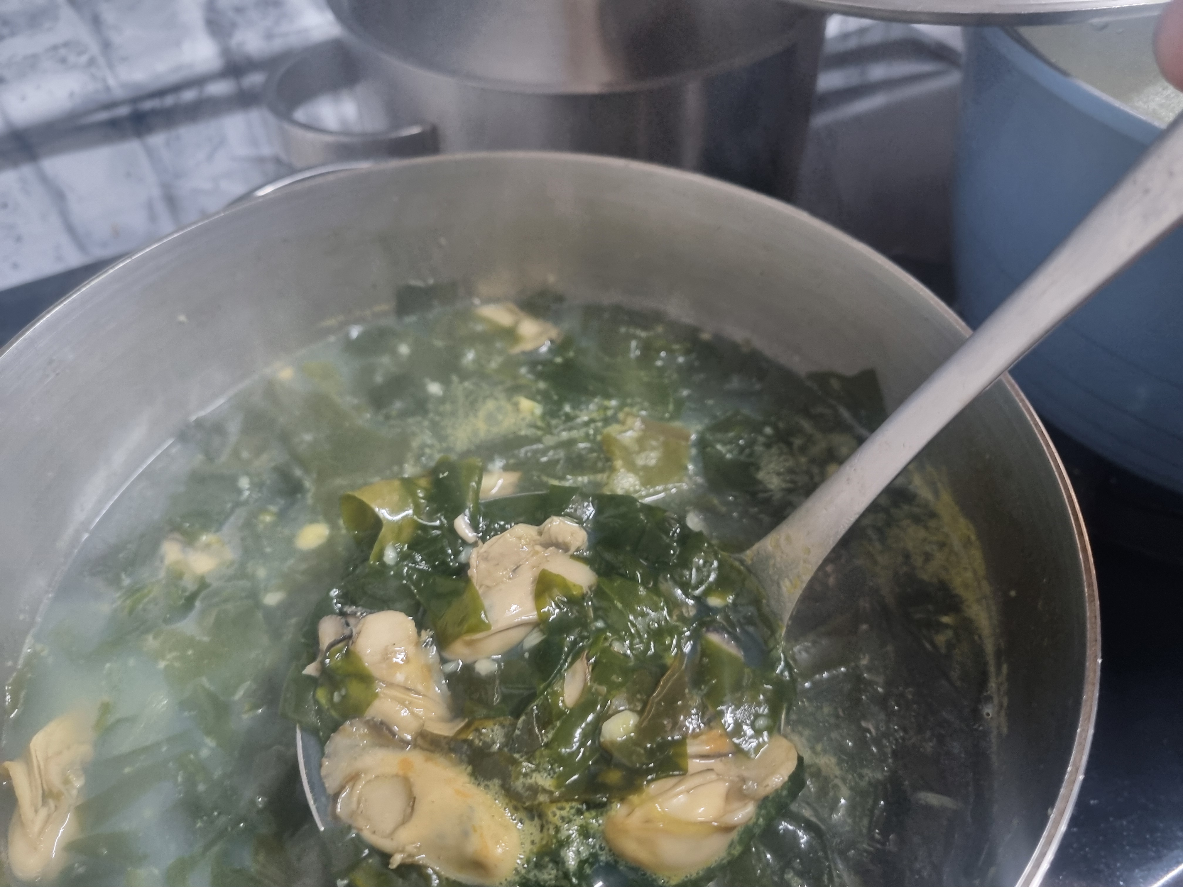 이렇게 끓이는데 끓기 시작하면 가스렌인지 불을 중간으로 하고 추가로 5~7분 정도 더 끓여주면 아주 맛있는 굴미역국이 됩니다.