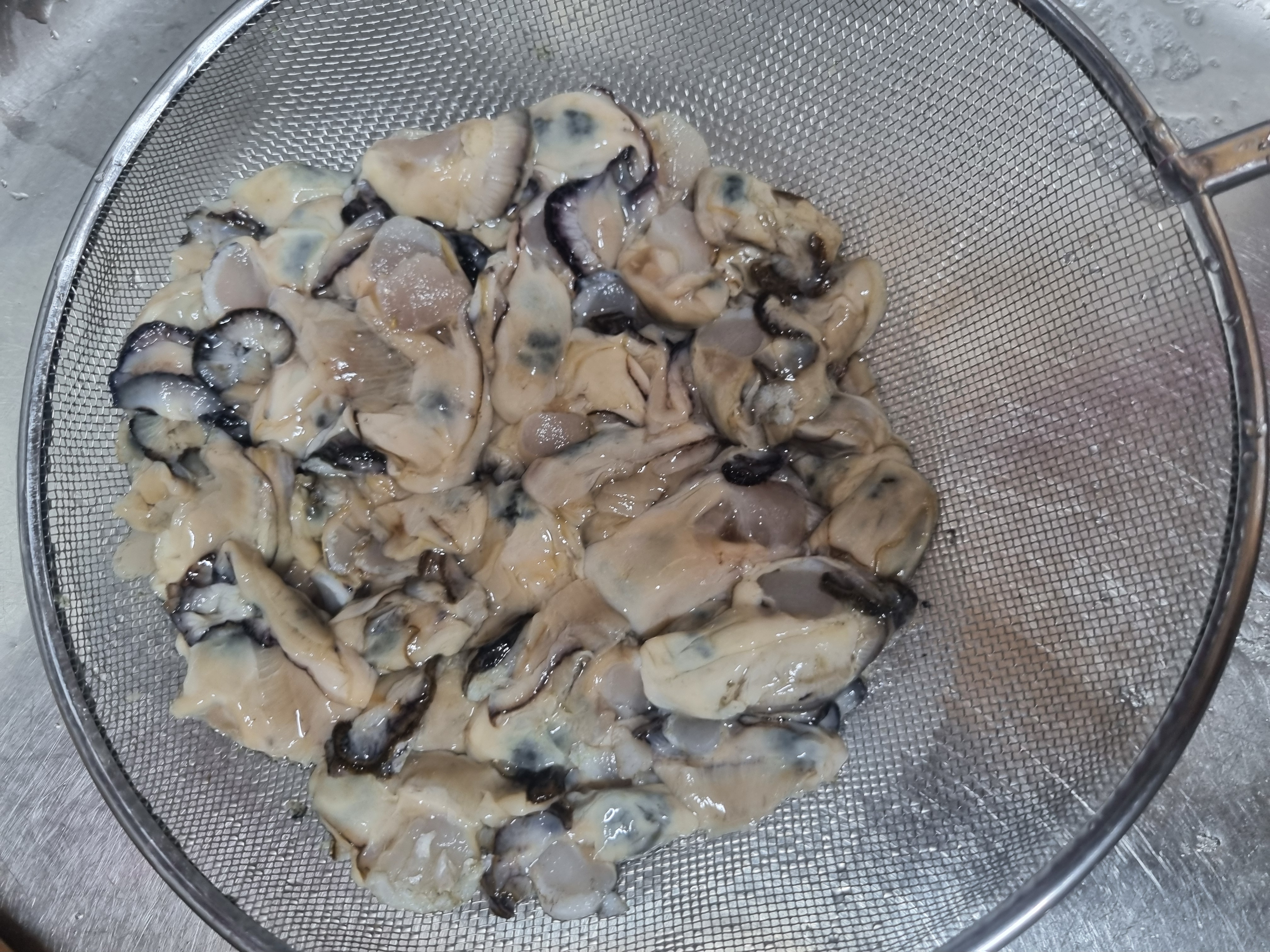 미역볶음이 끝났으면 이어서 굴을 넣는 순서입니다.