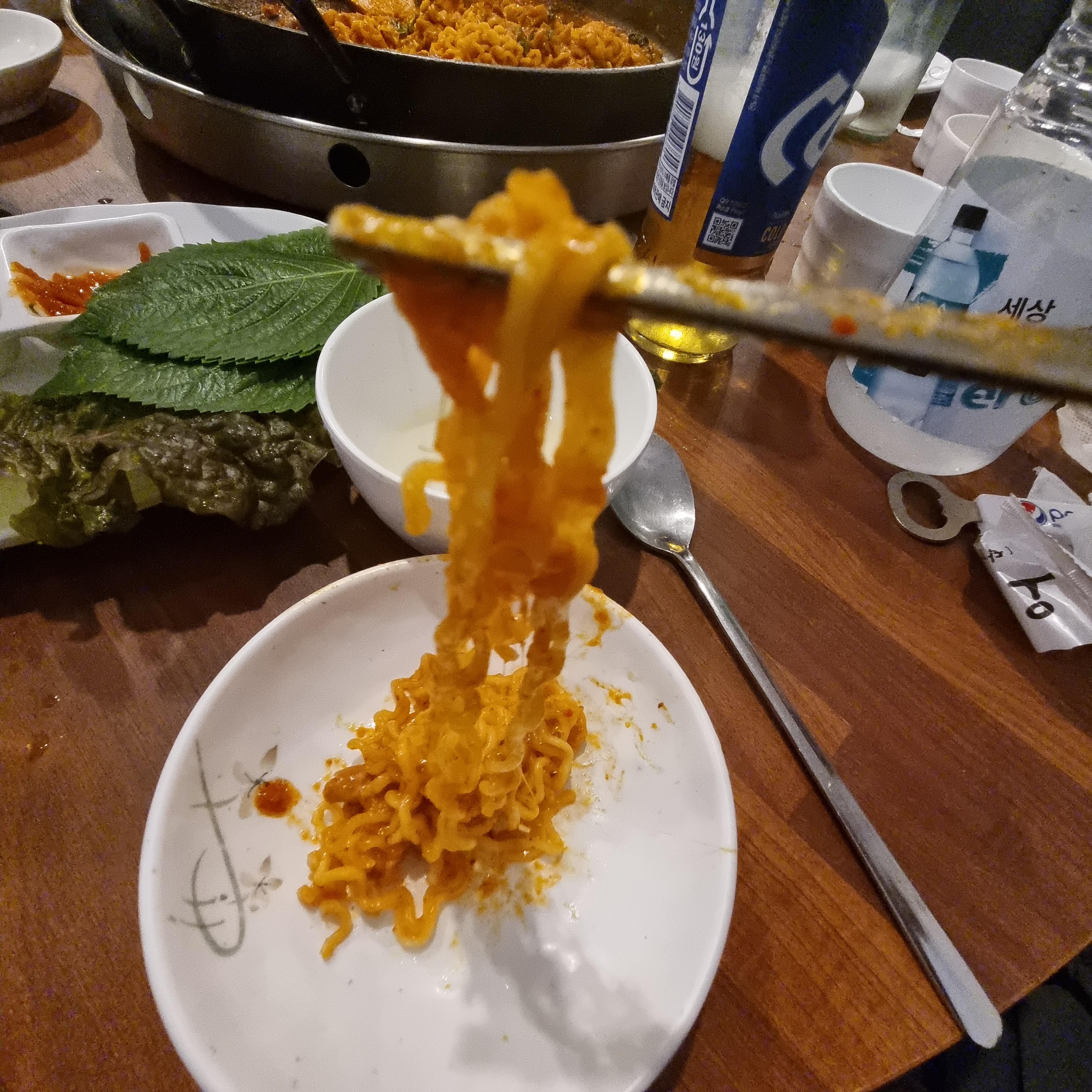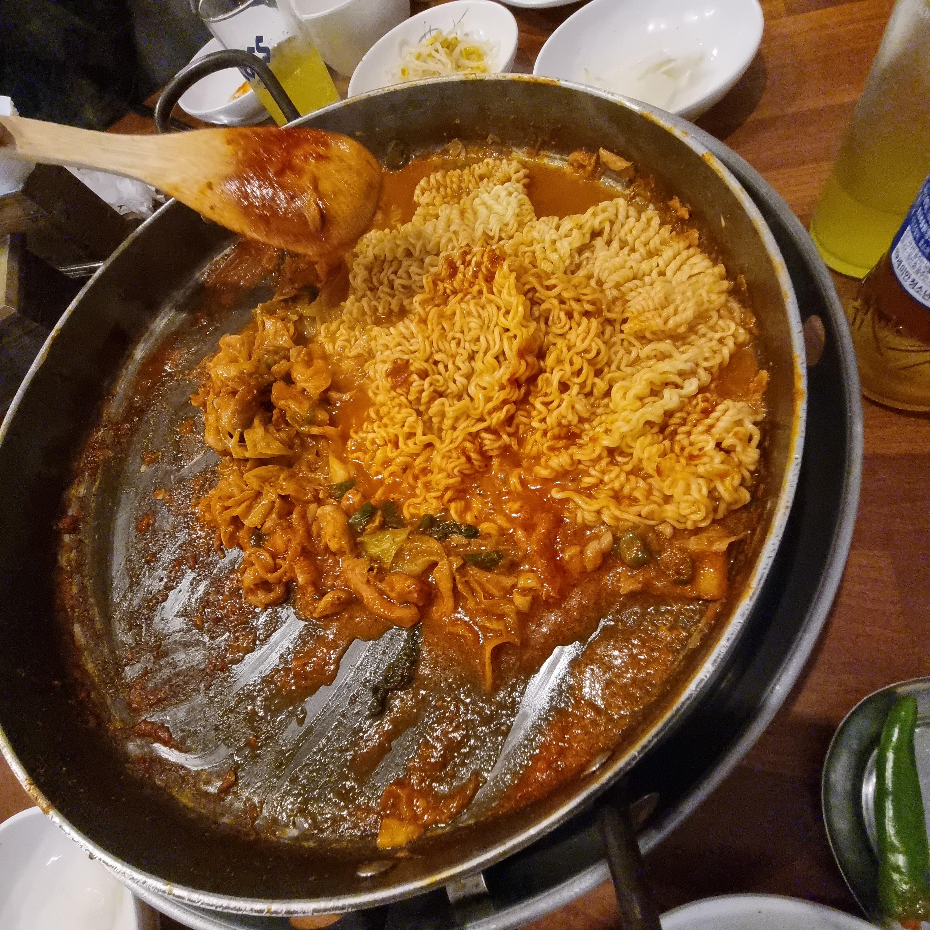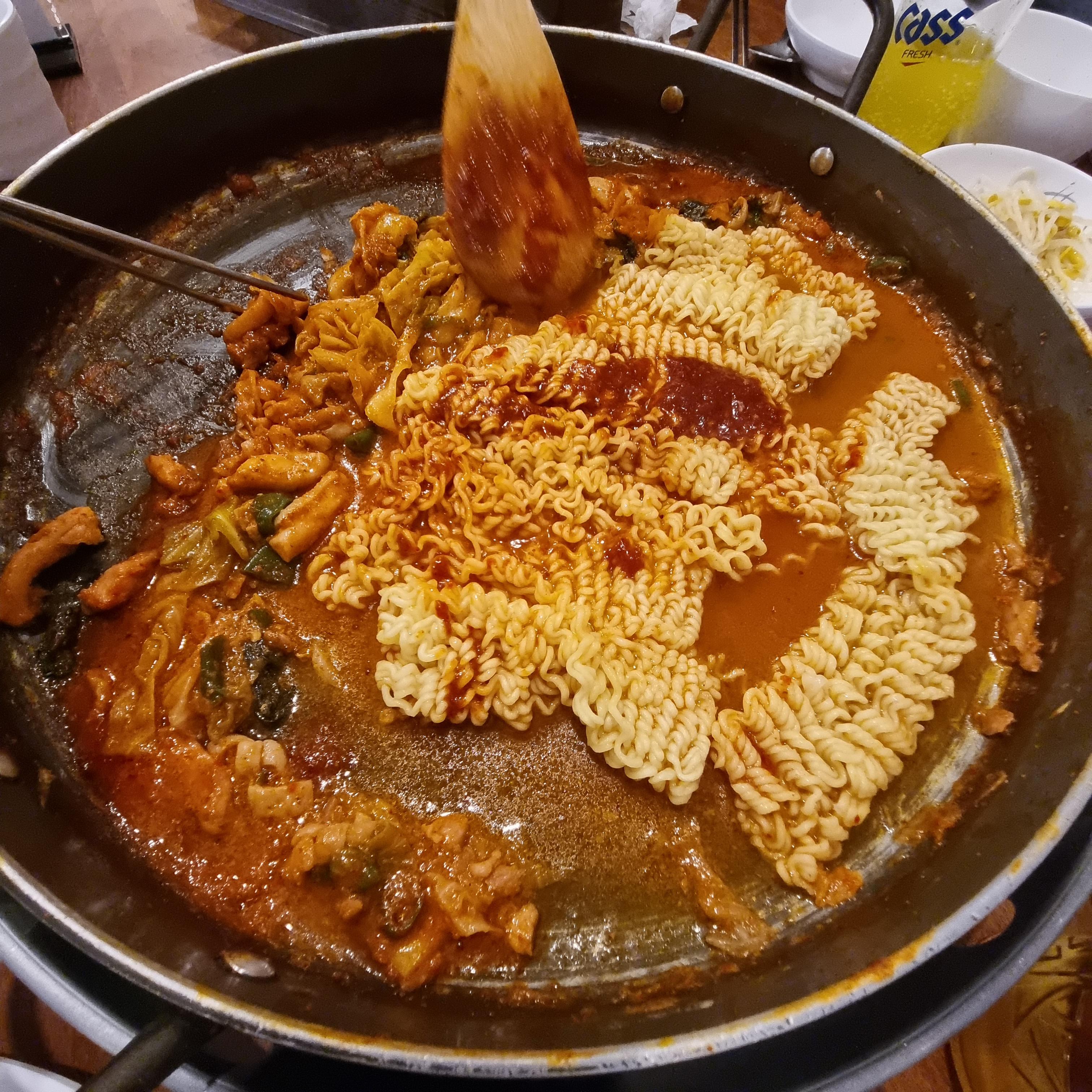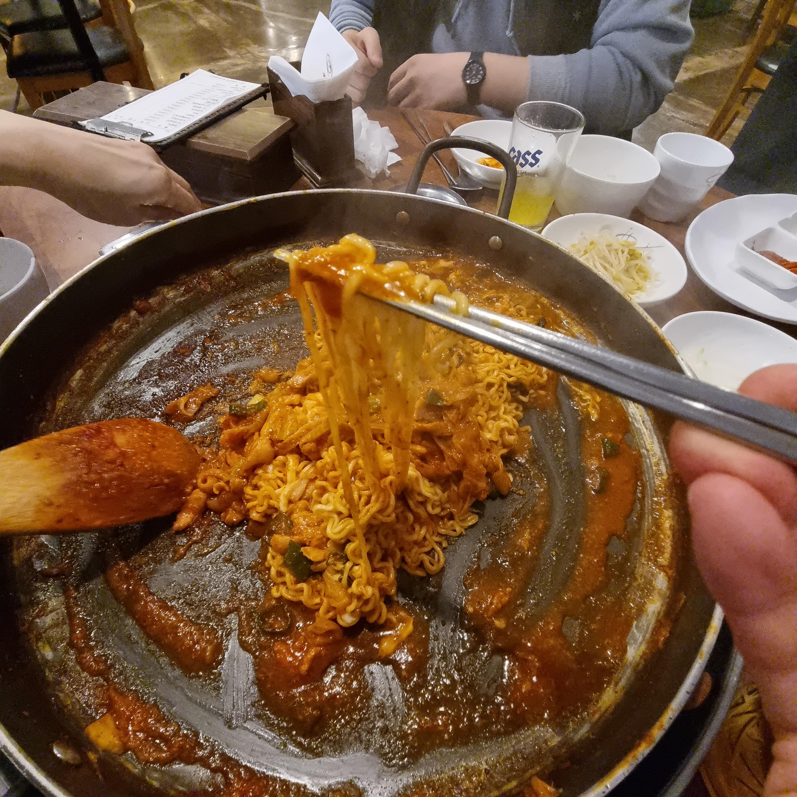 볶음라면이라고 하면 더 잘 어울리겠습니다. 닭갈비 양념과 함께 볶아진 라면 정말 맛있는데 솔직히 닭갈비 보다 더 맛있게 먹었습니다.
