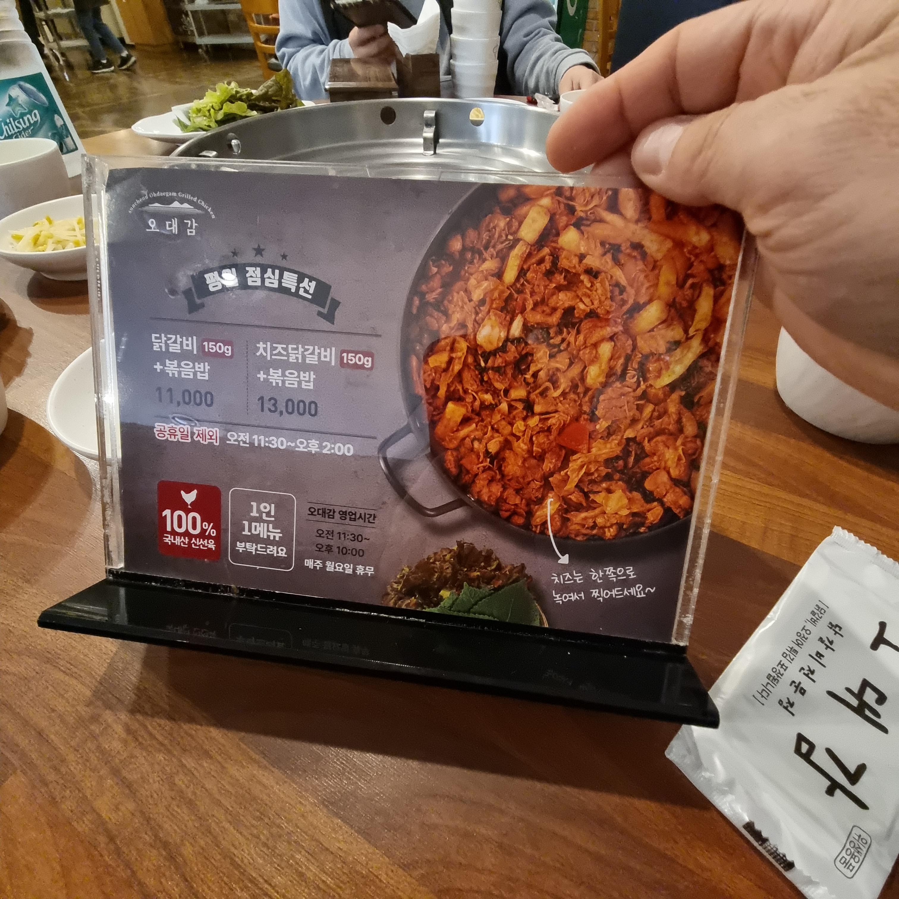 참고로 점심특선이 있는데 오전 11시 30분부터 오후 14시까지 닭갈비+볶음밥이 11,000원이며 치즈닭갈비와 볶음밥은 13,000원입니다.