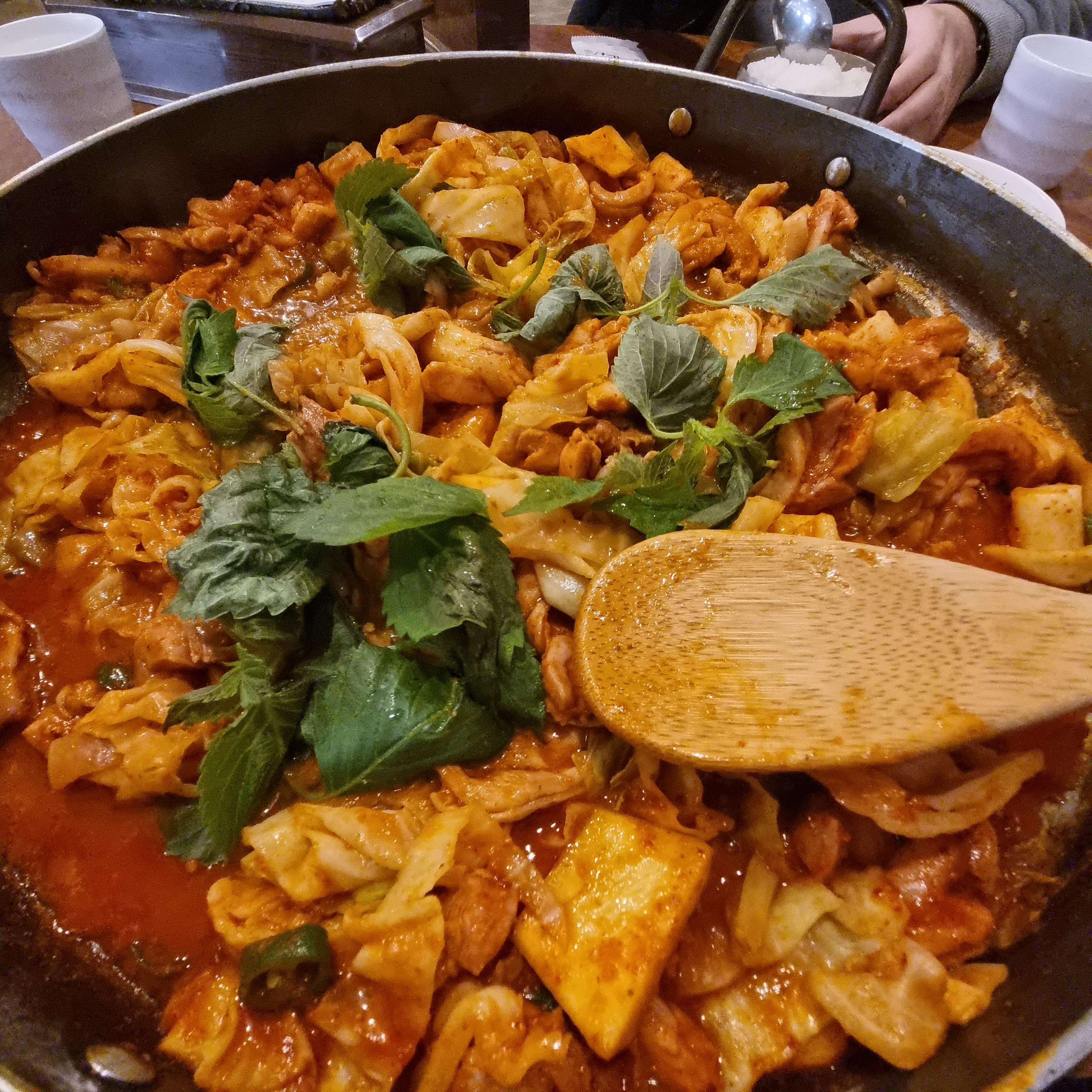 닭갈비가 정말 맛있습니다. 평소에 돼지고기를 자주 먹는 편이었는데 앞으로는 닭고기로 먹어야 될 듯하는데 일단 기름기가 적고 맛이 담백하고 고기가 정말 부드럽습니다.