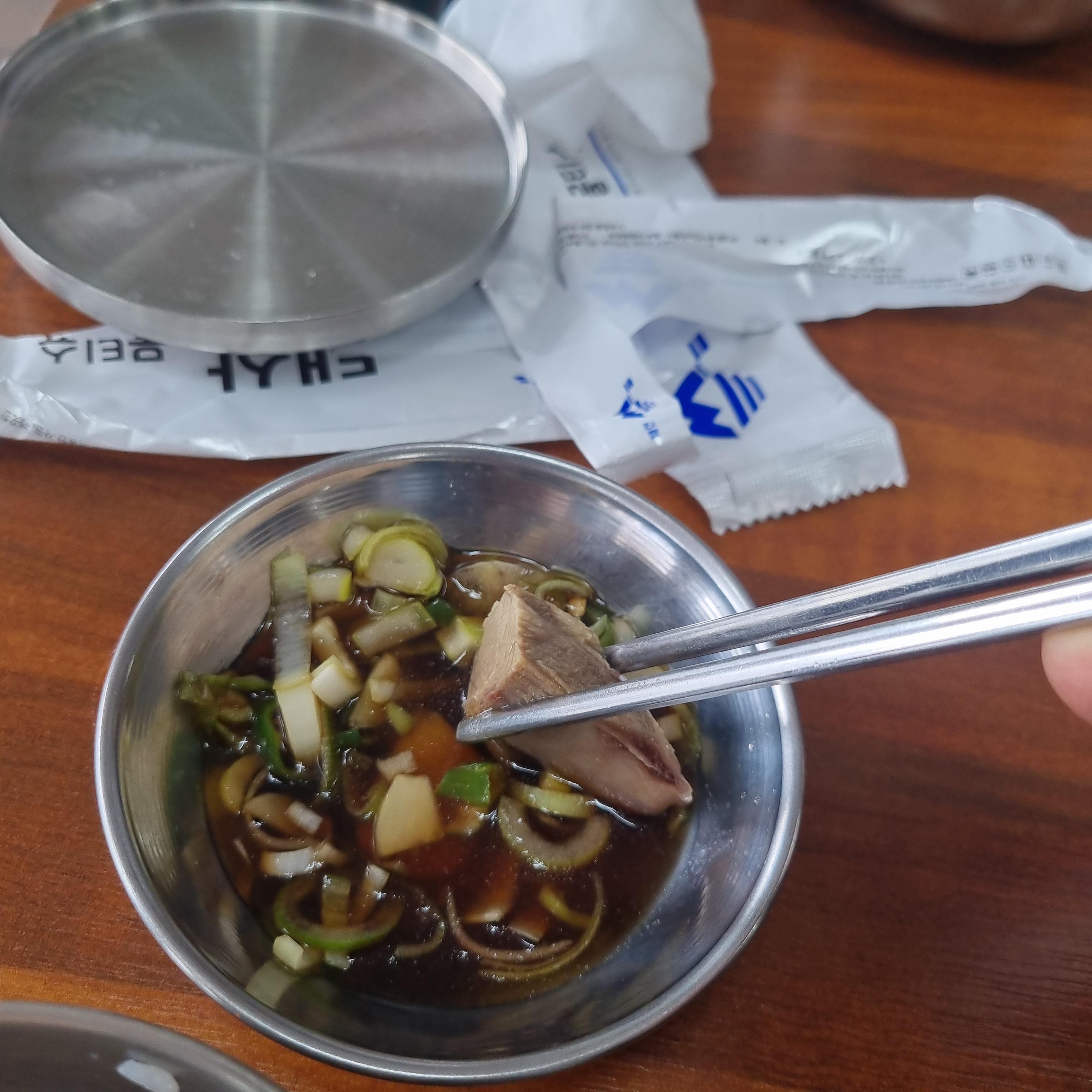 살코기는 아닌데 위의 사진에 있는 고기도 쫀득하면서 식감이 정말 좋았습니다. 예전에 그냥 소머리곰탕을 먹을 때 그냥 밥에 말아먹었는데 이렇게 먹으면 더 맛있게 먹을 수 있습니다.