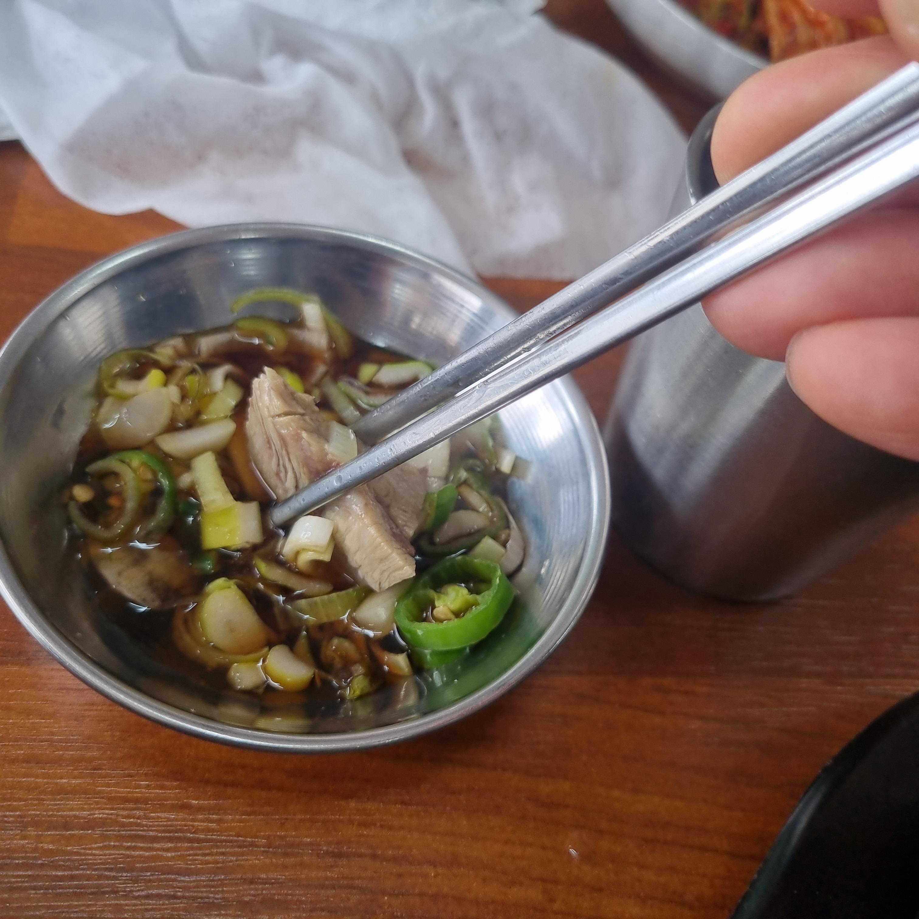 그런데 우~와 소스에 찍어먹는 수육이 정말 맛있었습니다. 국물도 먹으면서 찍어먹는데 고기도 식감이 좋고 맛있는데 소스도 정말 맛있어 좋았습니다.