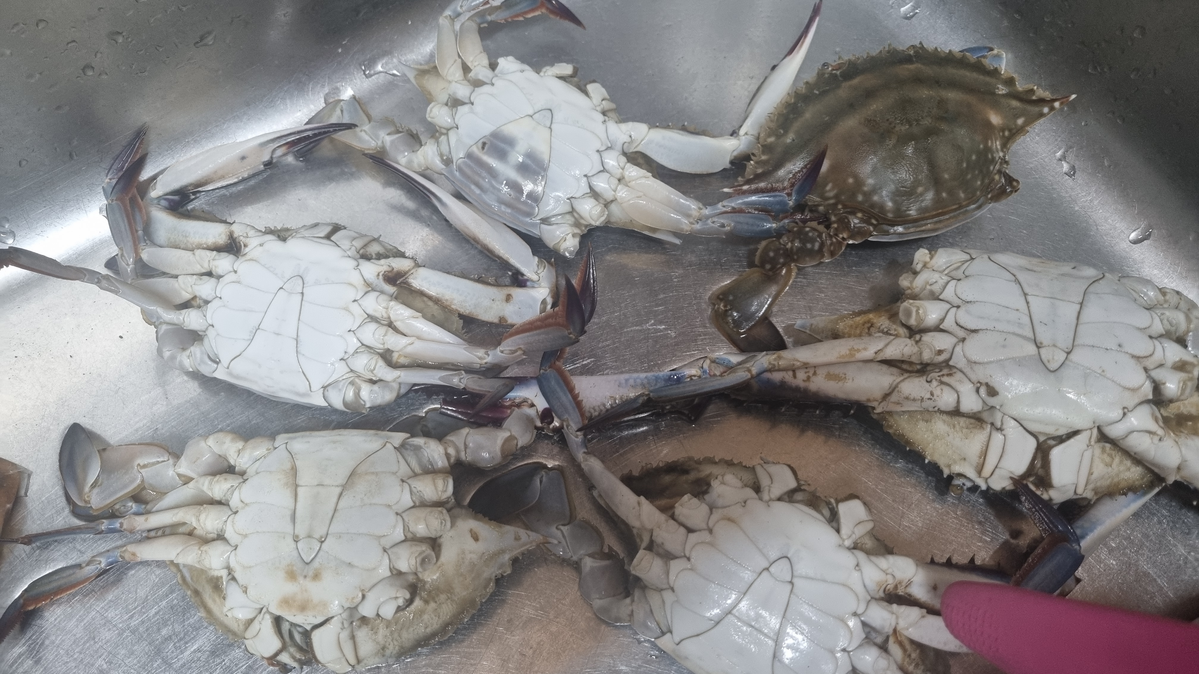 단지 씻어줘야 하는데 솔을 이용하여 하나하나 꽃게의 등과 배부분을 여러 번 문질러 주고 물로 헹구어 주곡 다리 부분도 솔로 씻어주면 되겠습니다.