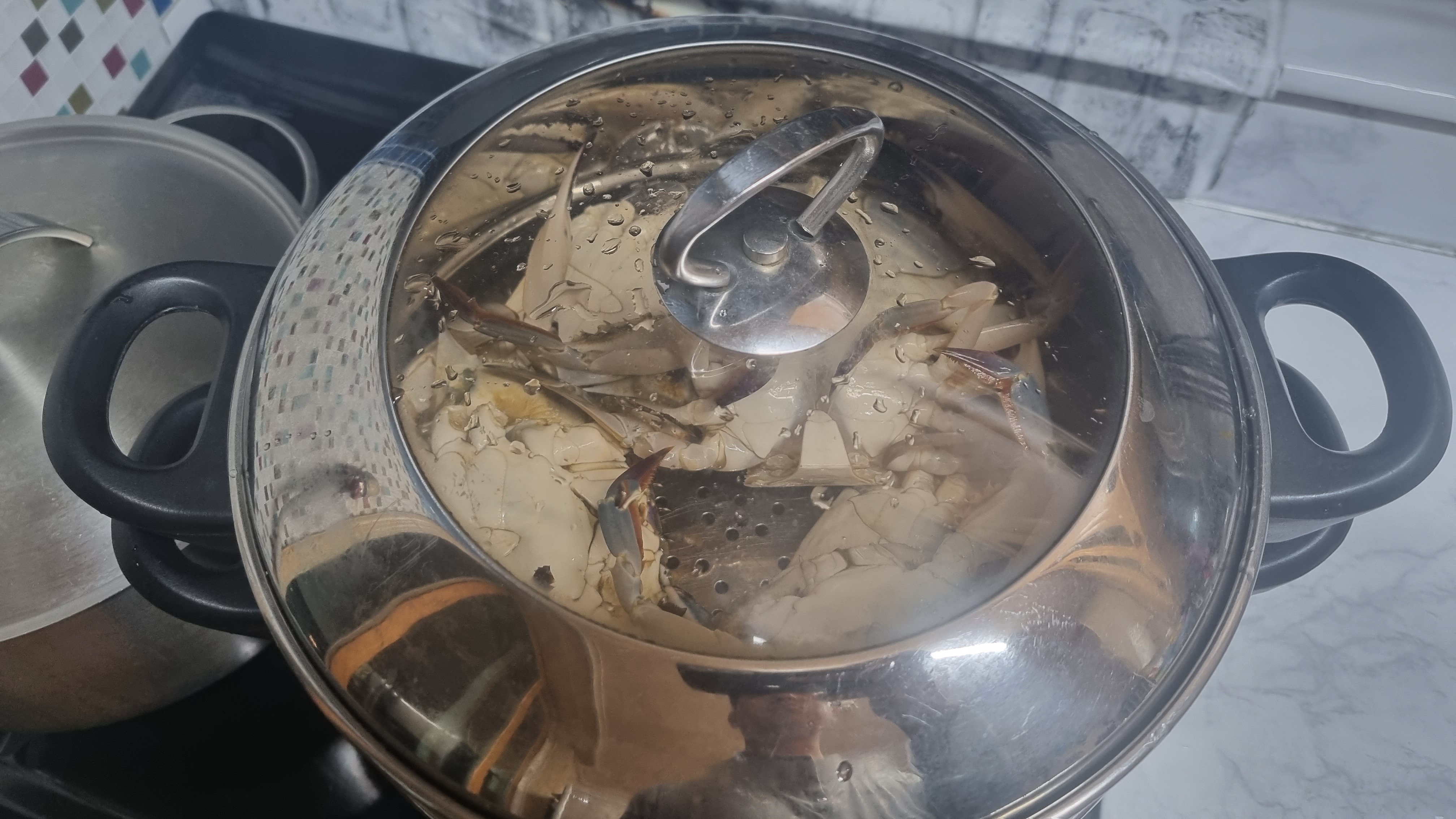 찜기에 물은 맥주컵기준 1개 정도만 넣으면 되고 꽃게는 배를 윗부분으로 향하게 하여 가지런히 차곡차곡 놓으면 됩니다.