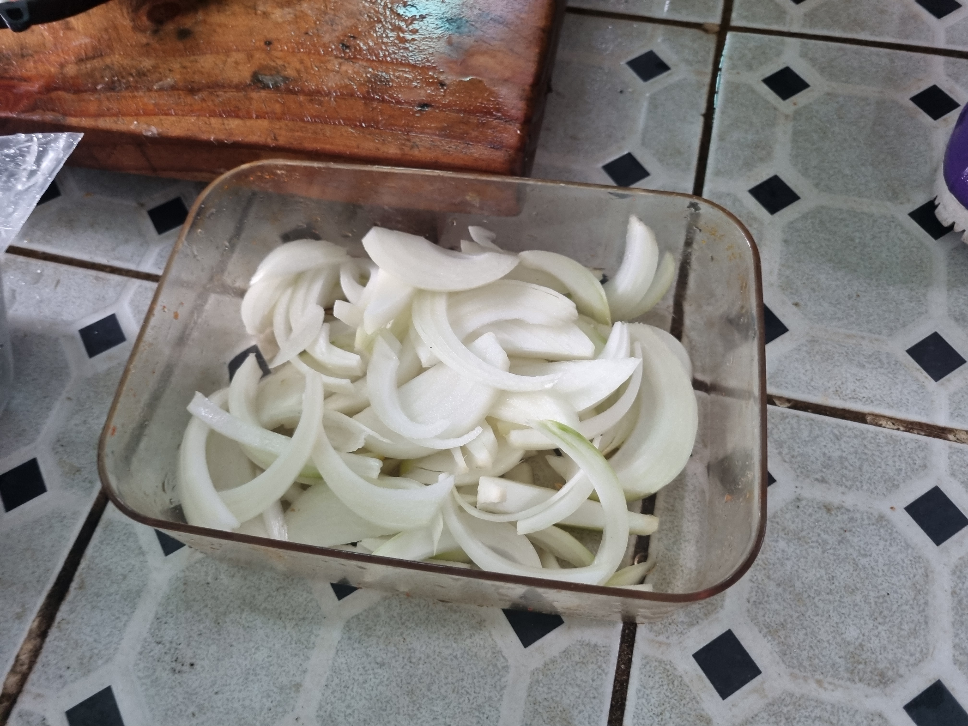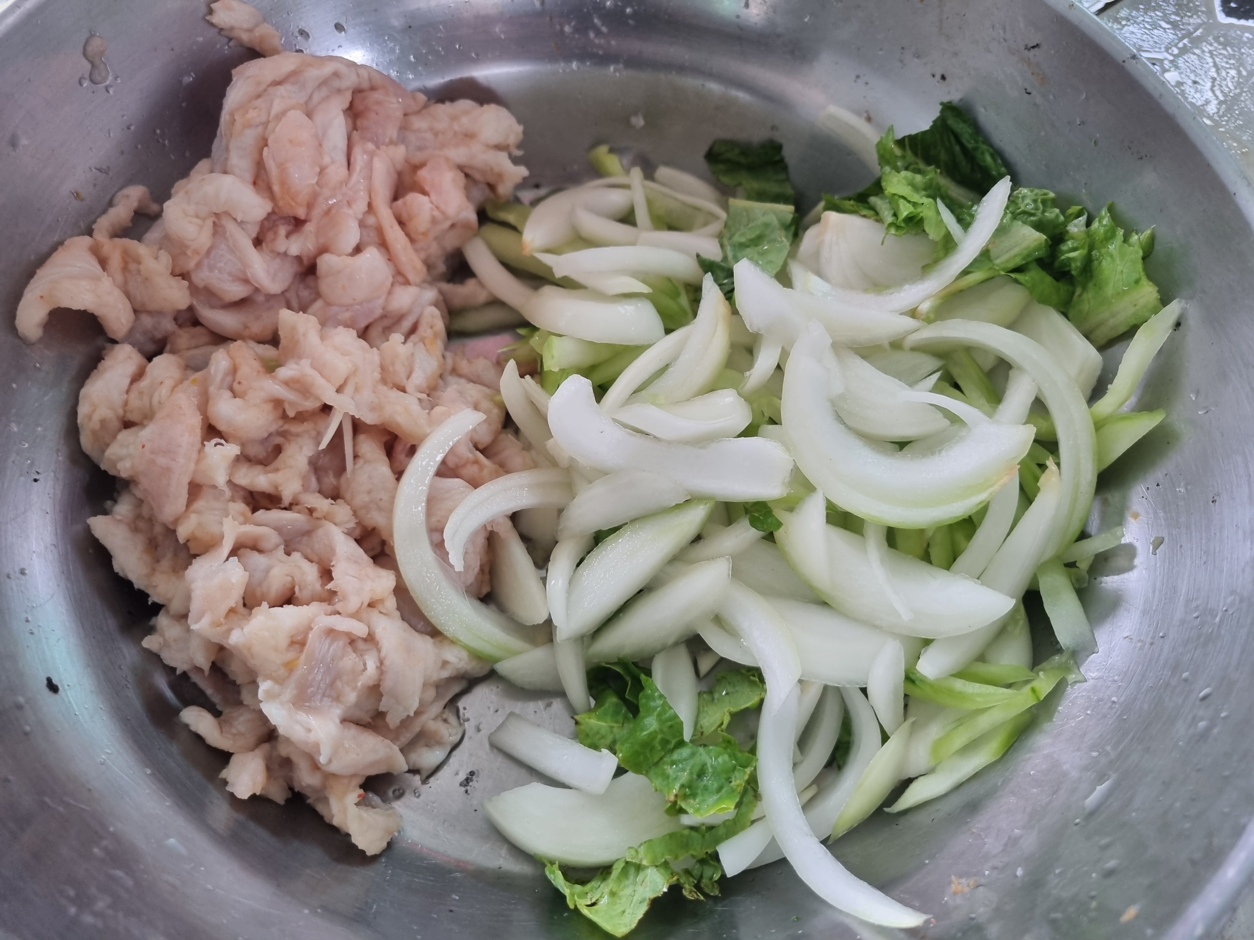 양파도 적당한 크기로 잘라주고 고추나 대파도 잘게 손질하여 놓습니다.