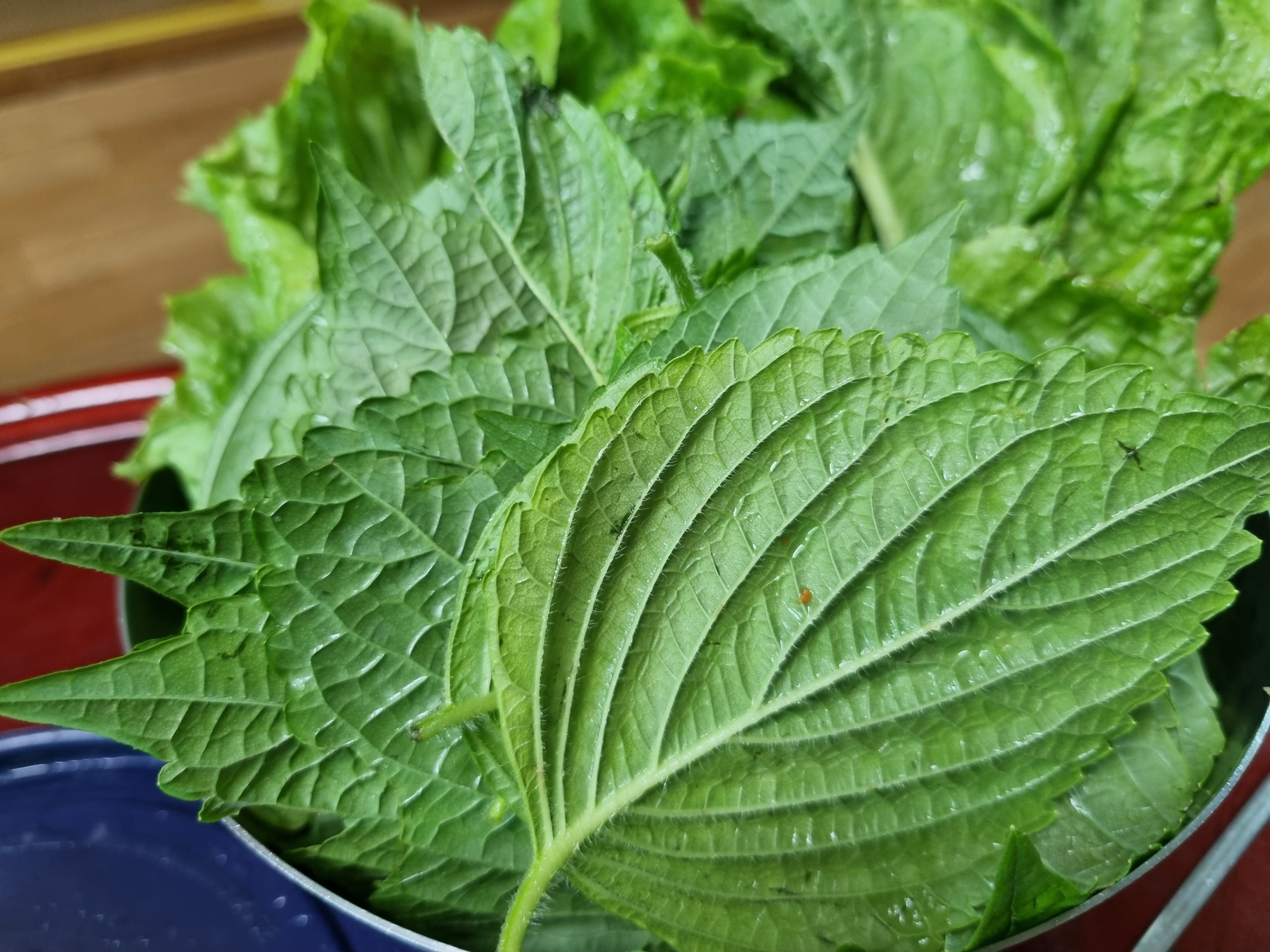 양파나 상추, 깻잎등을 깨끗이 씻어 가볍게 물끼를 빼어 준비합니다.