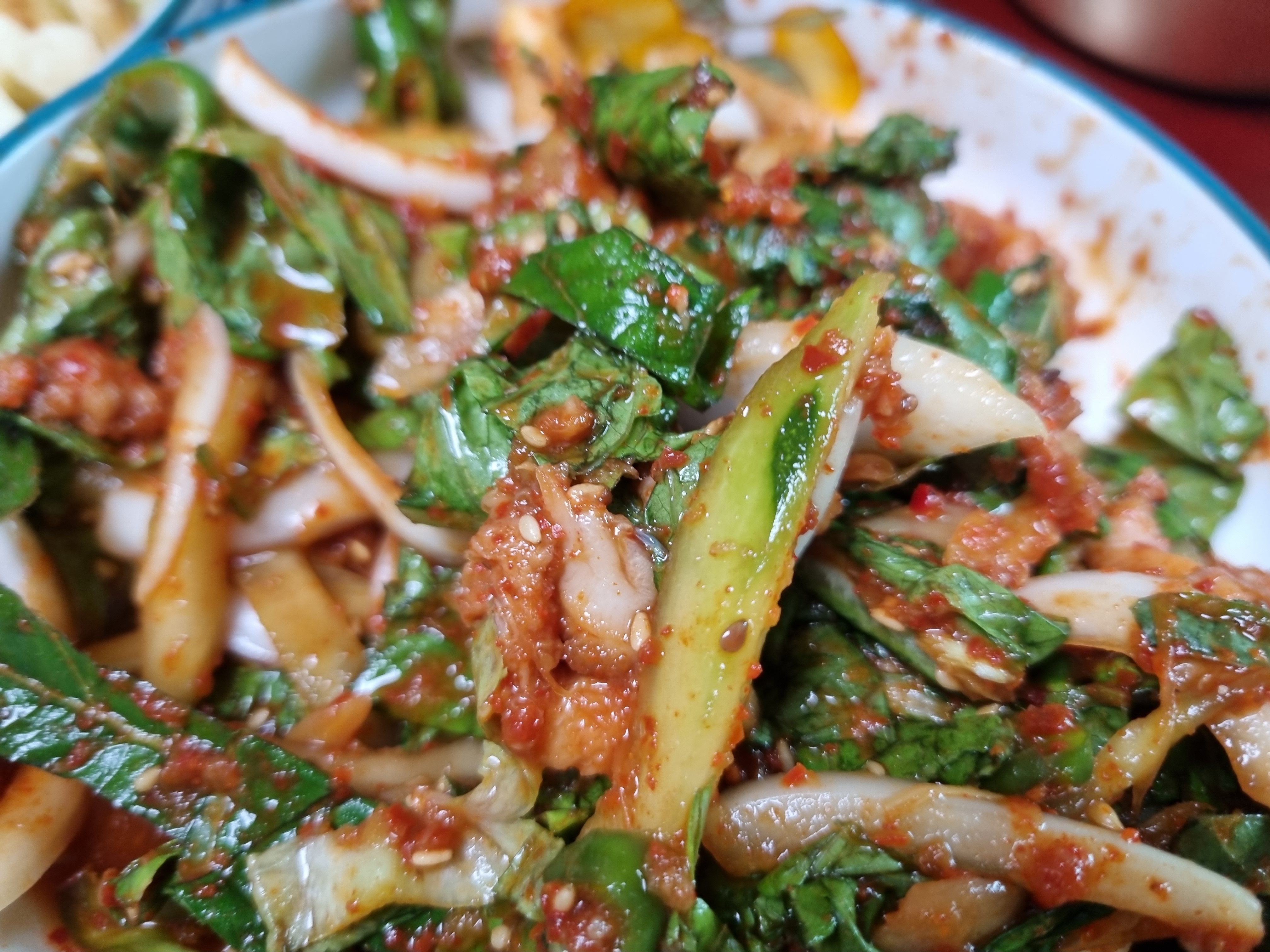 특별히 실력이 있는 것도 아니며 적당한 재료를 넣고 식초와 고추장이 맛을 완전히 좌우한 듯 보입니다.