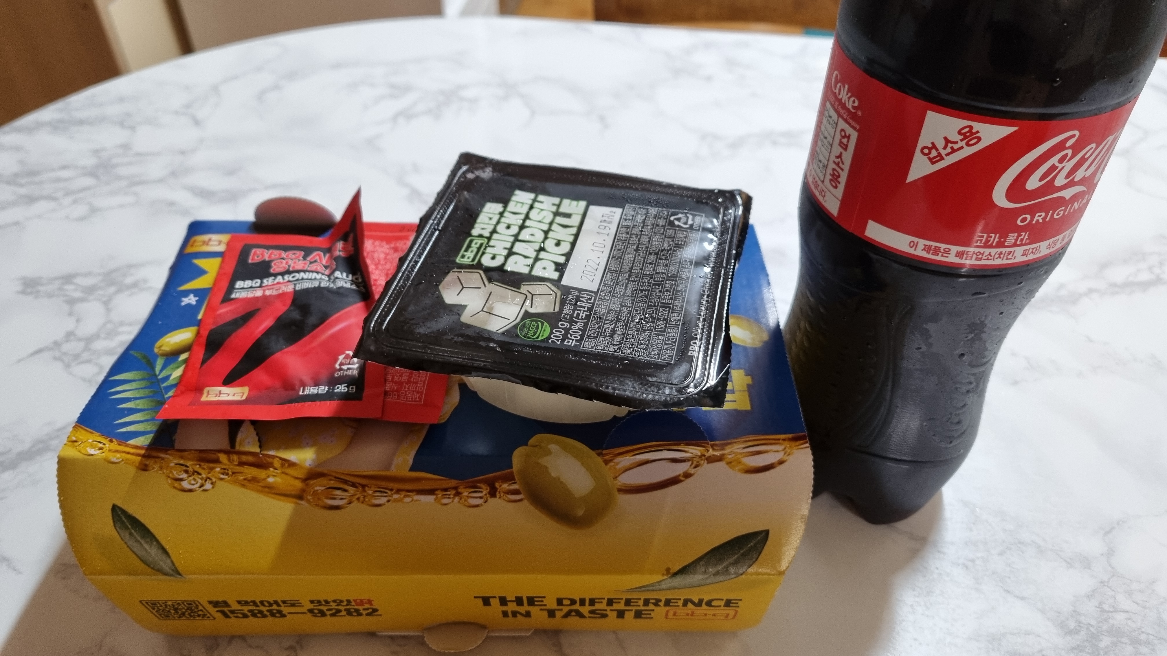 오랜만에 BBQ 치킨을 주문하여 먹었습니다