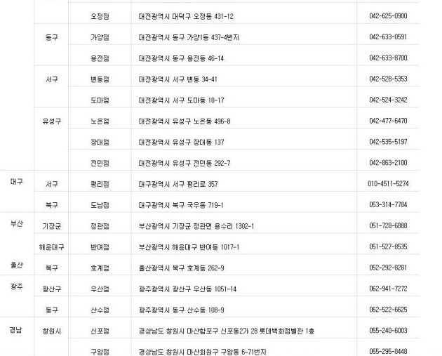 아래는 전국 매장 위치입니다. 웬만한 지역은 모두 있습니다. 일반 경정비업소와 동일하며 본인의 지역에 정비업소가 없으면 구입하지 않아야 할 듯합니다.