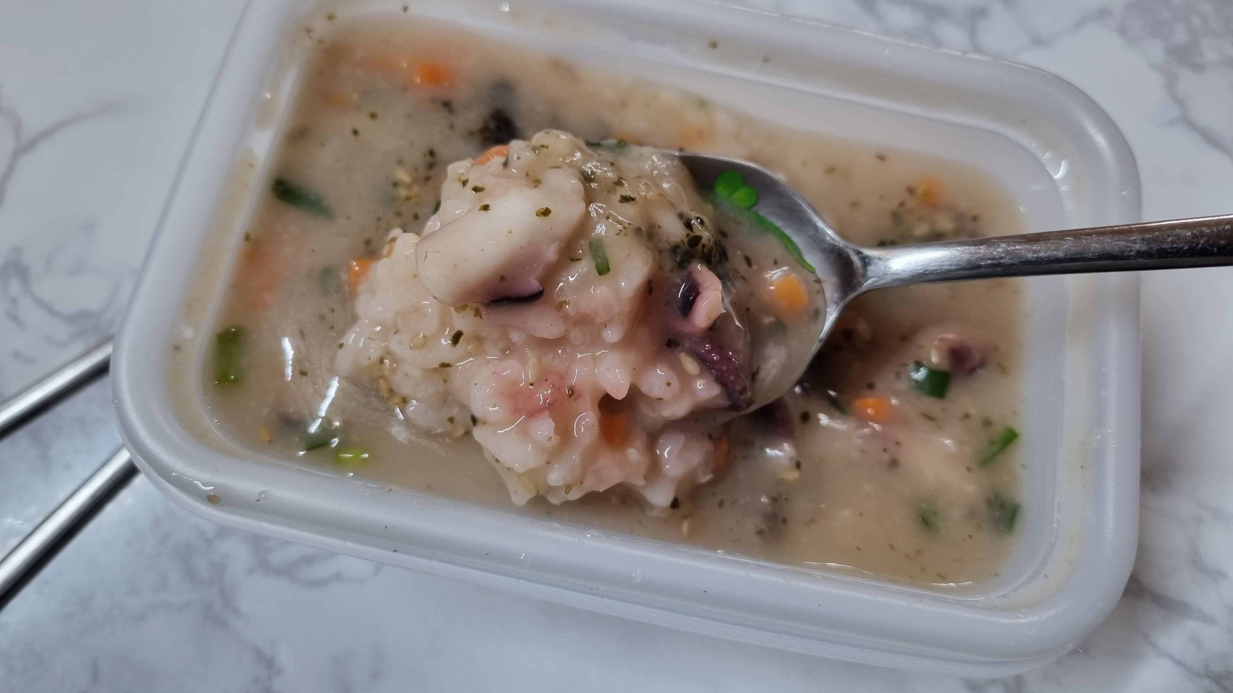불낙죽인데 먹을만하며 낙지가 씹히는 식감이 좋고 한 끼 식사로 충분히 가능하네요. 이전에 소고기죽을 먹은 적이 있는데 그것보다 더 맛있었습니다. 메뉴가 워낙 다양하니 본인의 입맛에 맞는 것을 주문하면 되겠습니다.
